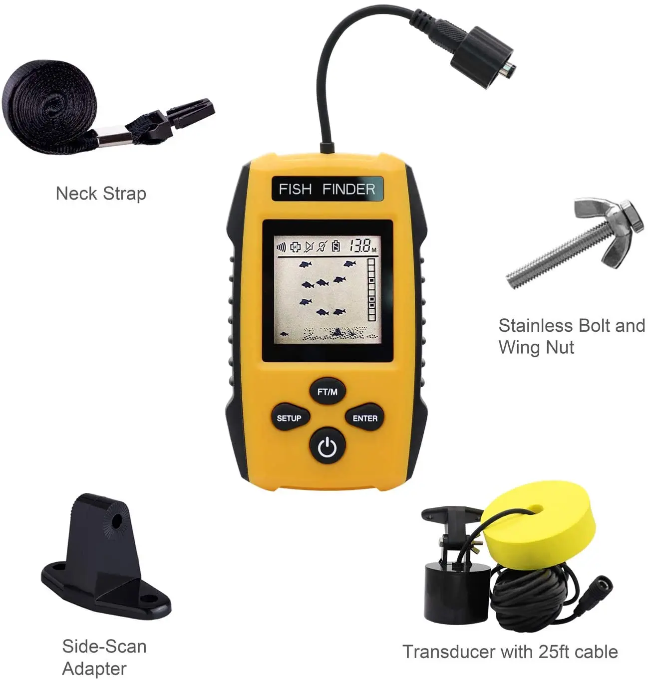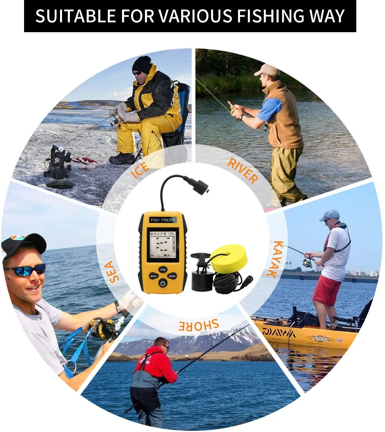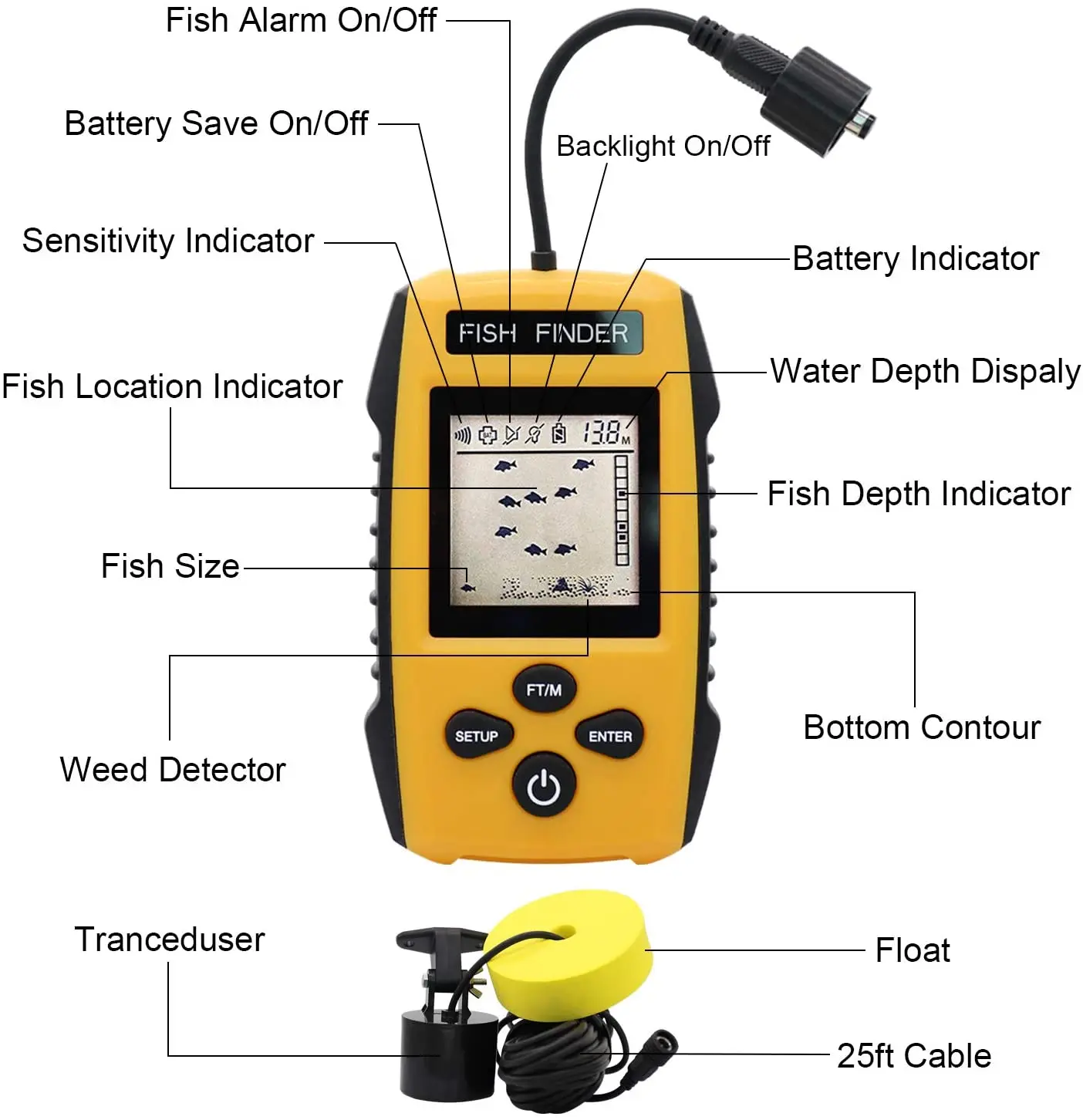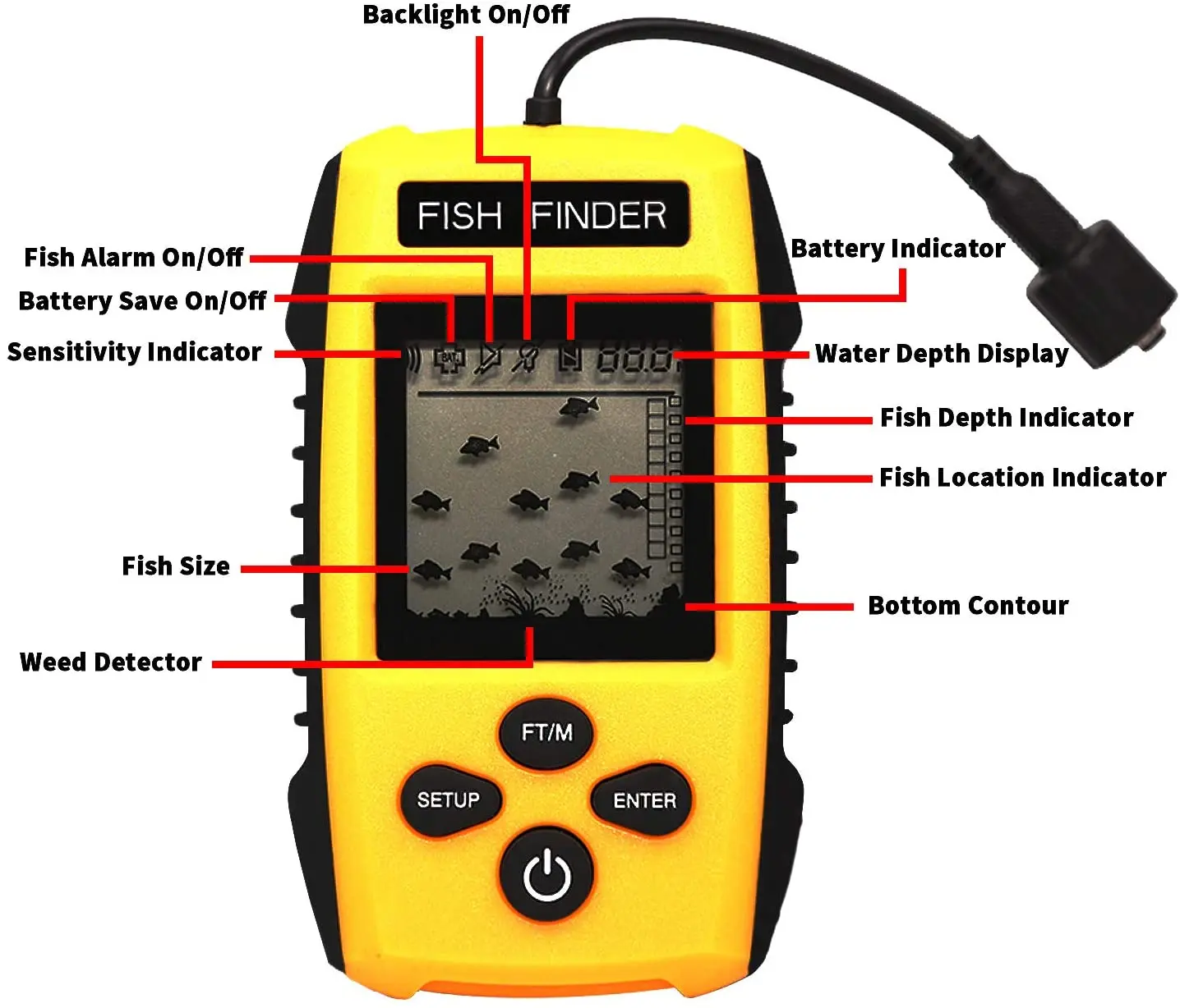5) Muestra la profundidad del agua, la ubicación de los peces y la hierba inferior y la roca