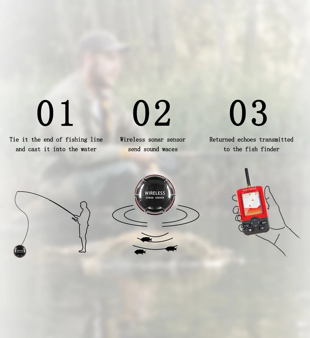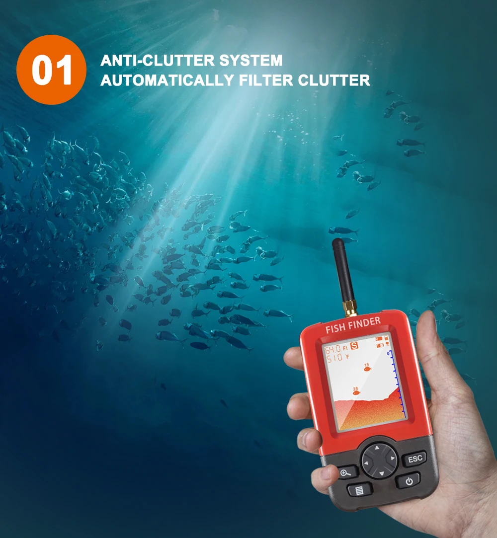 Sonar inalámbrico recargable para pesca, sonda de eco de 45M de profundidad de agua, buscador de peces portátil