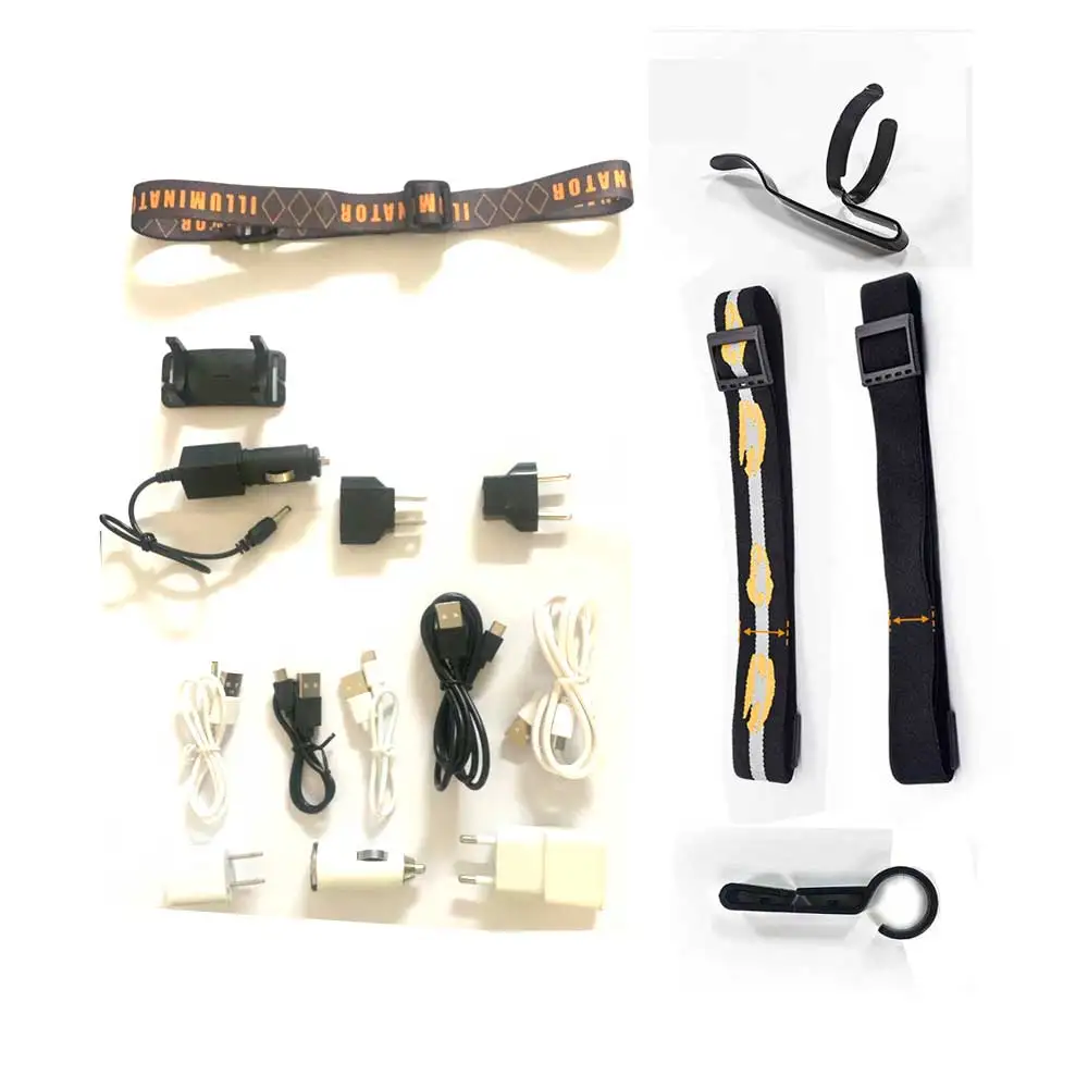 Soporte de accesorios para diadema, clip para Faro, linterna de cabeza, linterna, lámpara Flash, carga inteligente por USB para coche