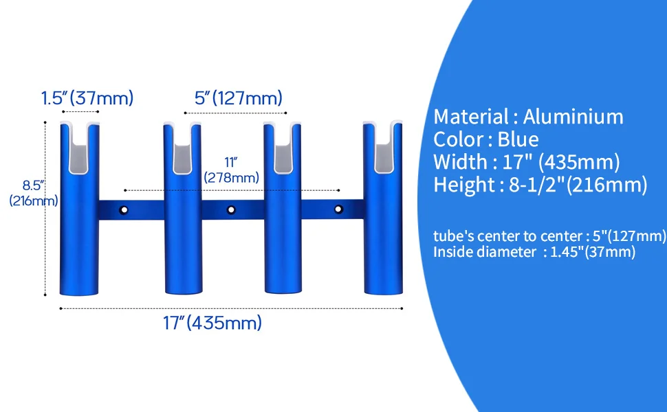 【Dimensions】- Width:16-1/2" (420mm) ,Height:8-1/2"(216mm),Inside diameter of rod holder tube is : 1.3"(35mm).Includes mounting screws.