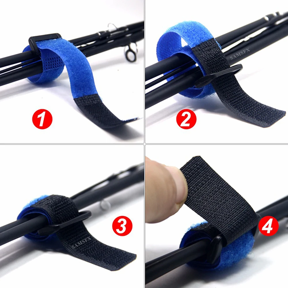 Soporte de amarre para caña de pescar, correas de cordón ajustables de colores, bridas reutilizables, sujetadores de tirantes, gancho de lazo, banda de envoltura de flejado