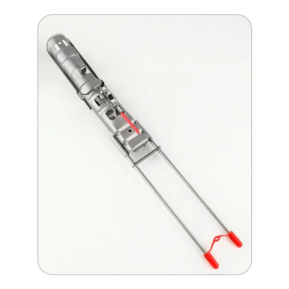 1. Modo de Punteo Automático: Inserte la caña de pescar en el soporte y presione hacia abajo para que el soporte forme un ángulo de 90 ° y bloquee la hebilla del mecanismo. Simplemente pasa la línea alrededor del gatillo y el pez se engancha automáticamente.