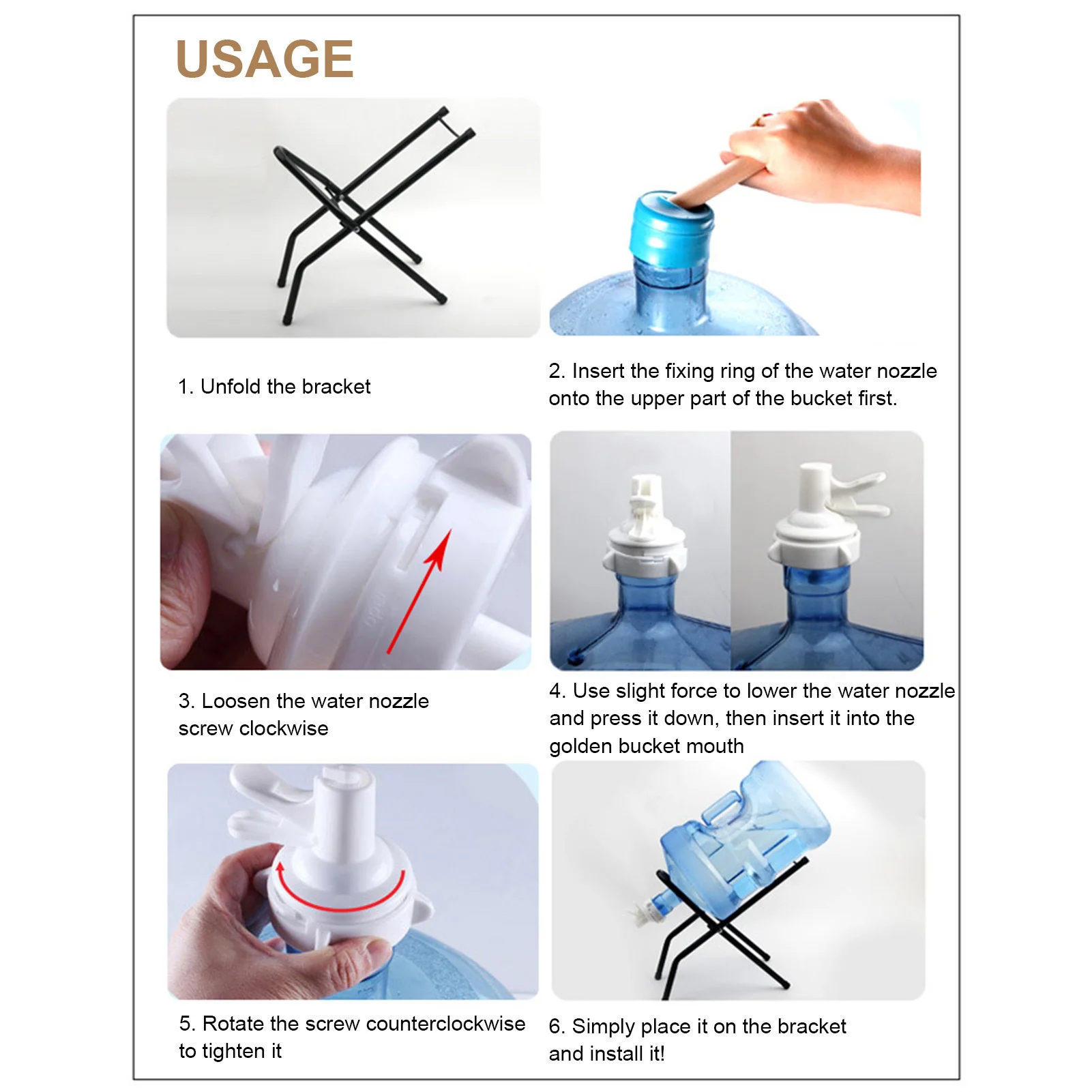 Fácil dispensación: equipado con válvulas dispensadoras, este soporte dispensador de agua proporciona un acceso fácil al agua, por lo que es una solución práctica y conveniente para las necesidades de hidratación en varios entornos.