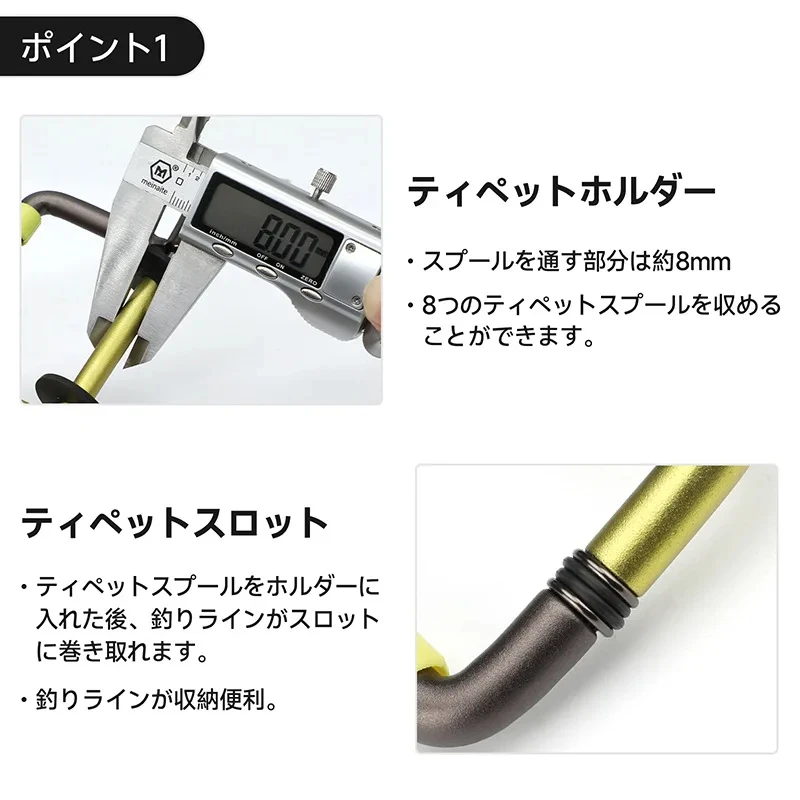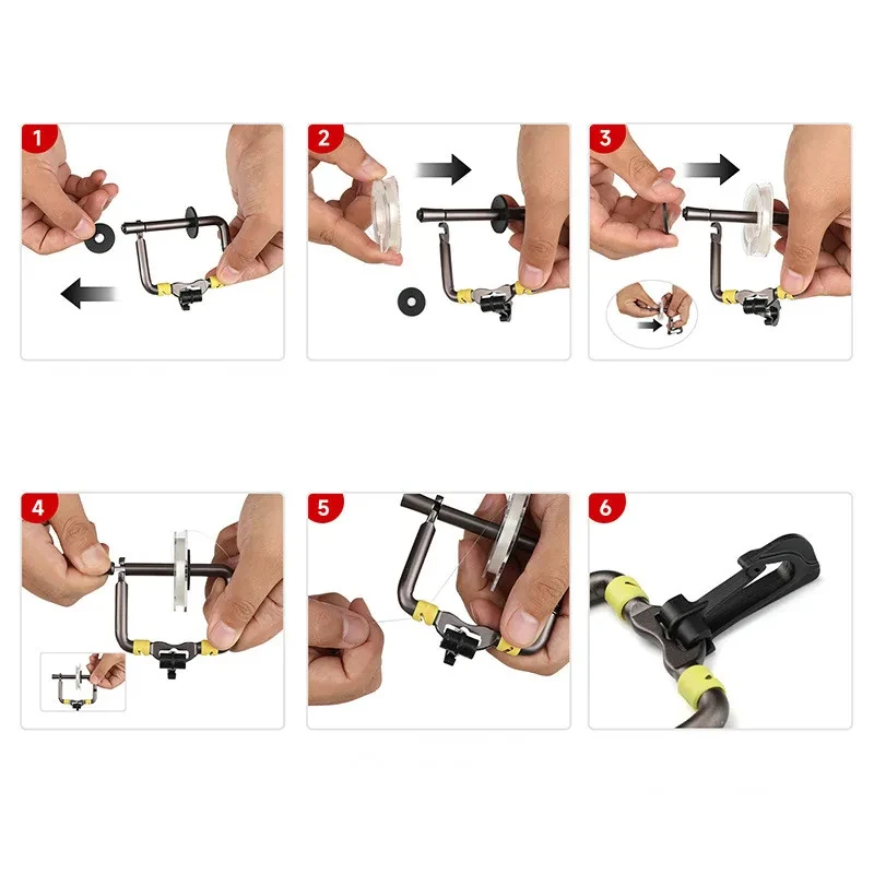 4. Después de insertar el carrete tippet en el soporte, la línea de pesca se puede enrollar en la ranura.