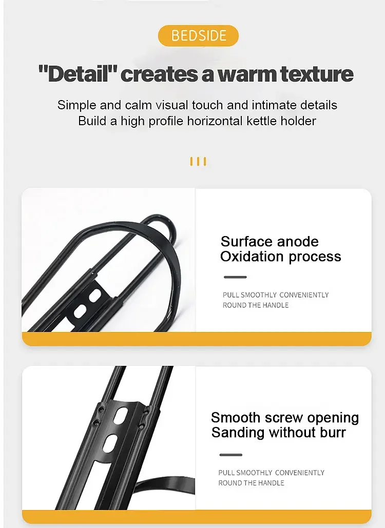 • Ligero y duradero:Hecho de aleación de aluminio, este portabotellas es liviano y duradero, lo que lo hace perfecto para viajes largos.