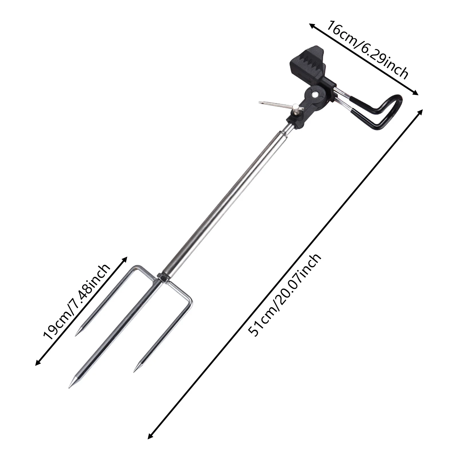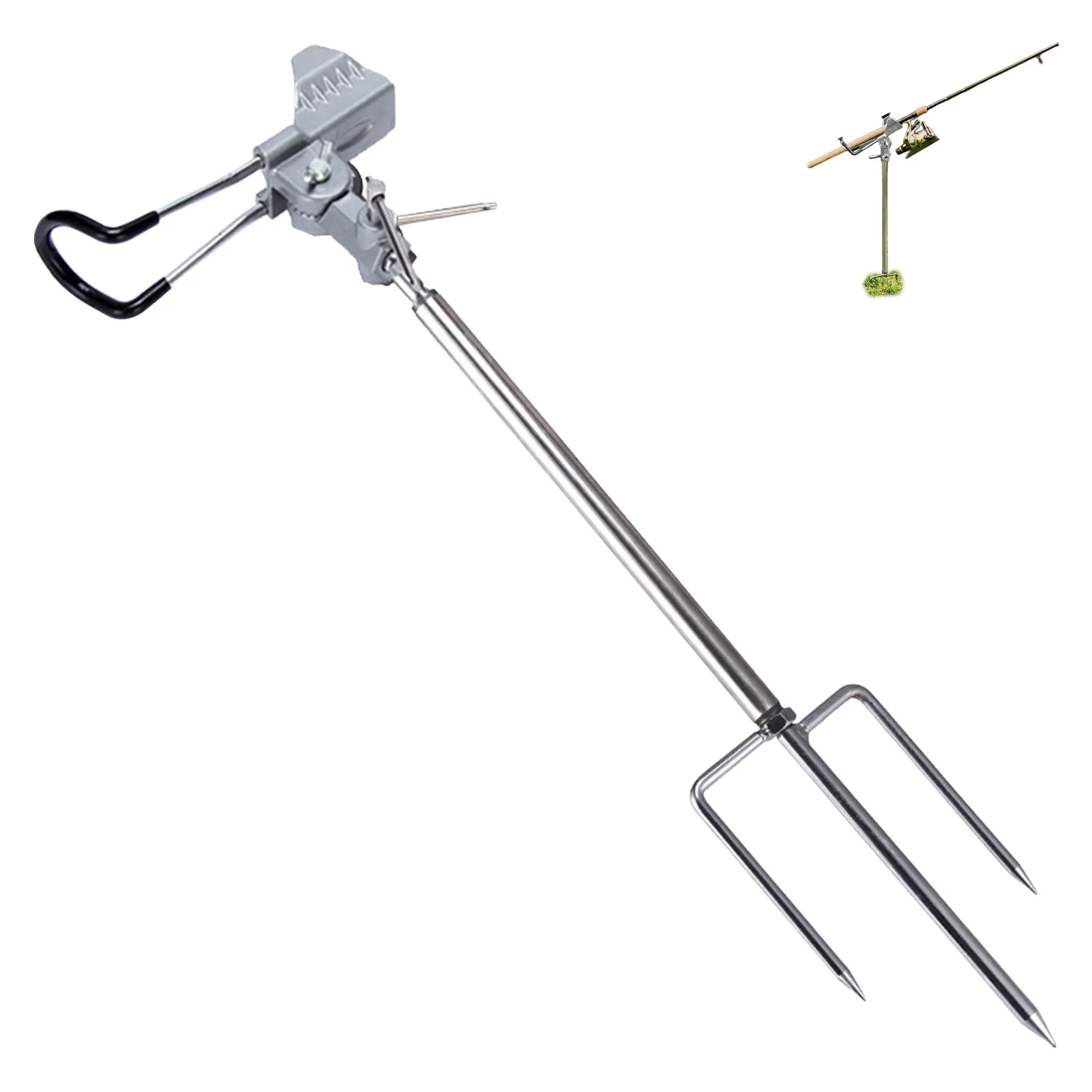 Inserto de tierra resistente y estable: Equipado con un tapón triangular estable, este soporte para caña de pescar para el suelo se inserta firmemente en varias superficies, asegurando un agarre seguro incluso en terrenos irregulares, para que su caña permanezca en su lugar durante sesiones de pesca intensas.
