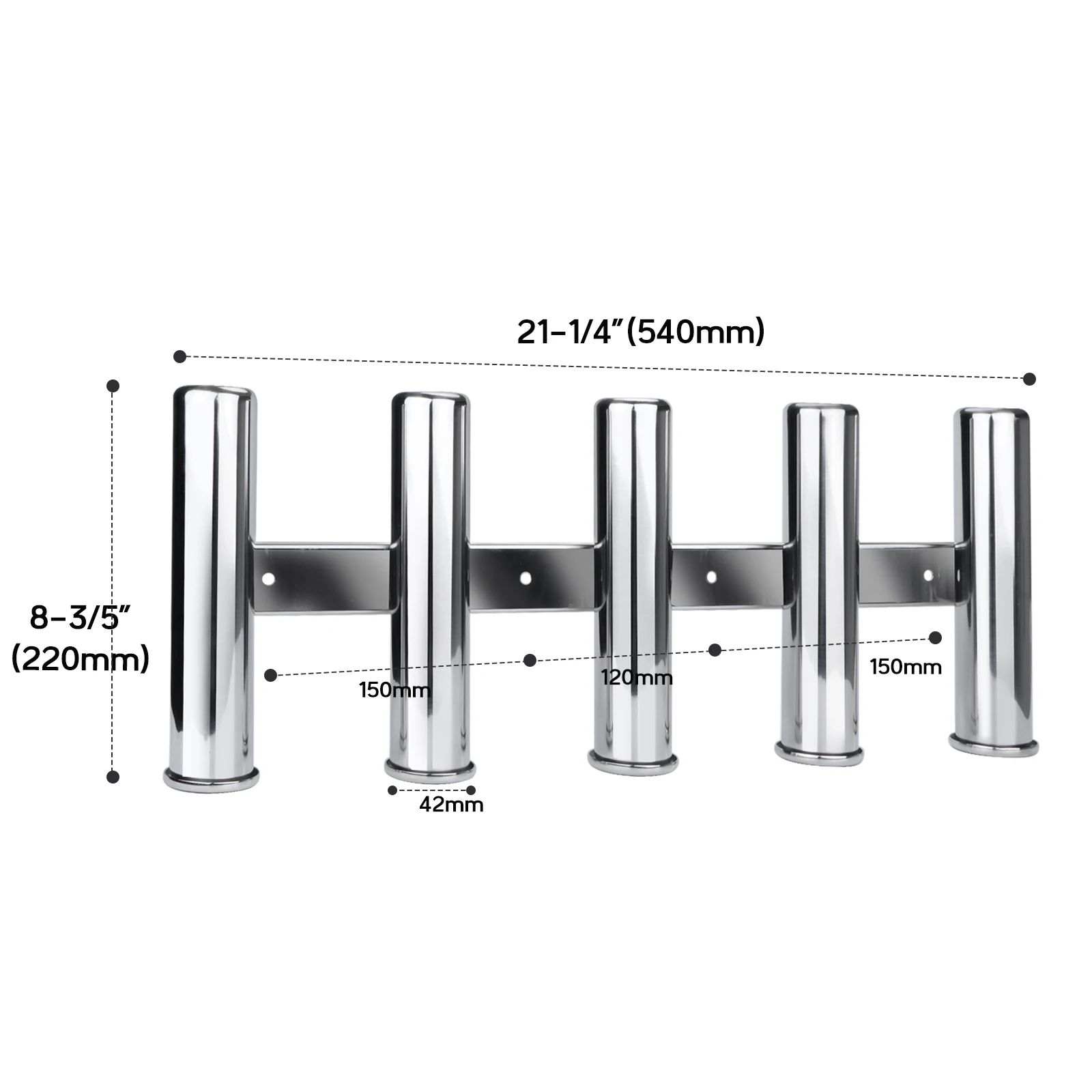 Soporte para caña de pescar, 5 tubos, estante para caña de pescar, barco fueraborda de acero inoxidable, yate marino de 19,5"