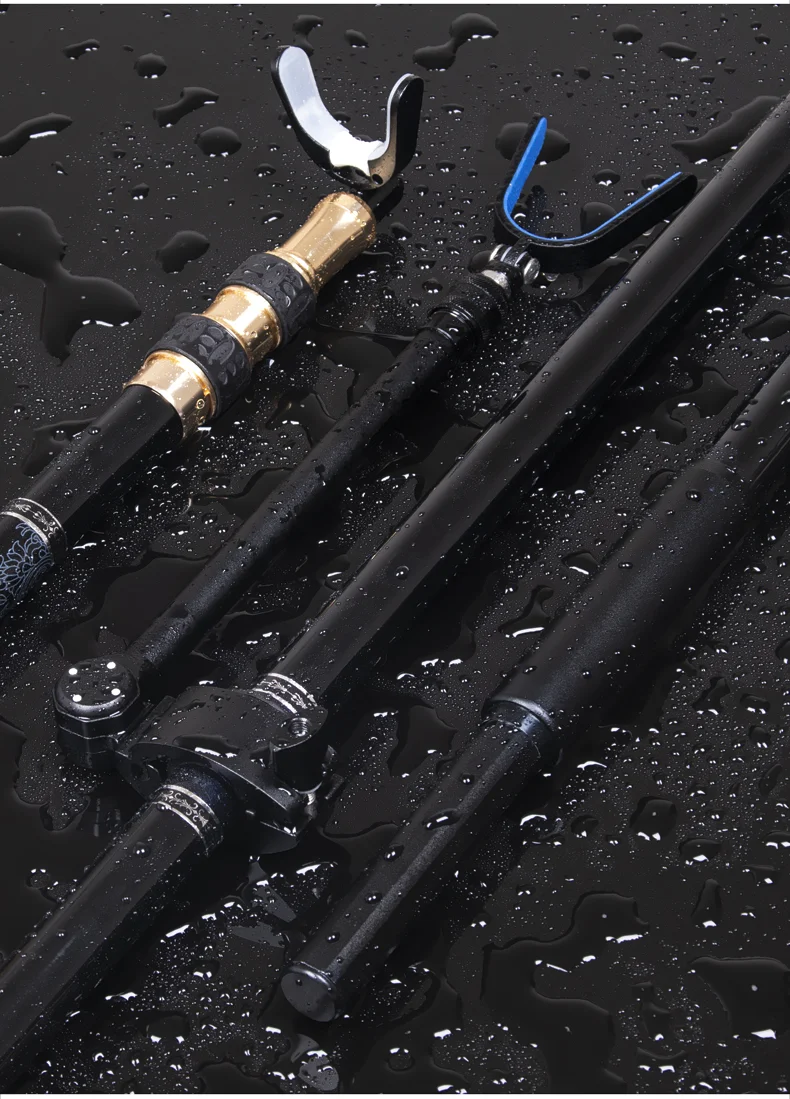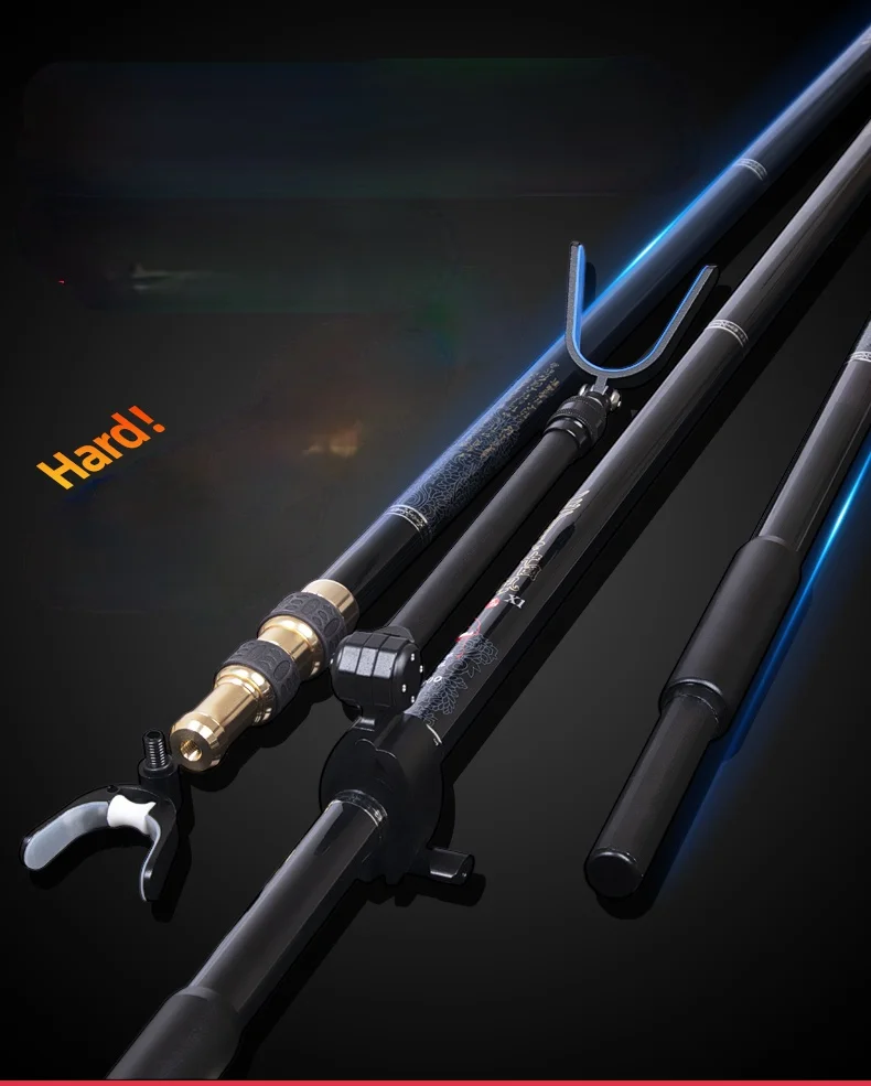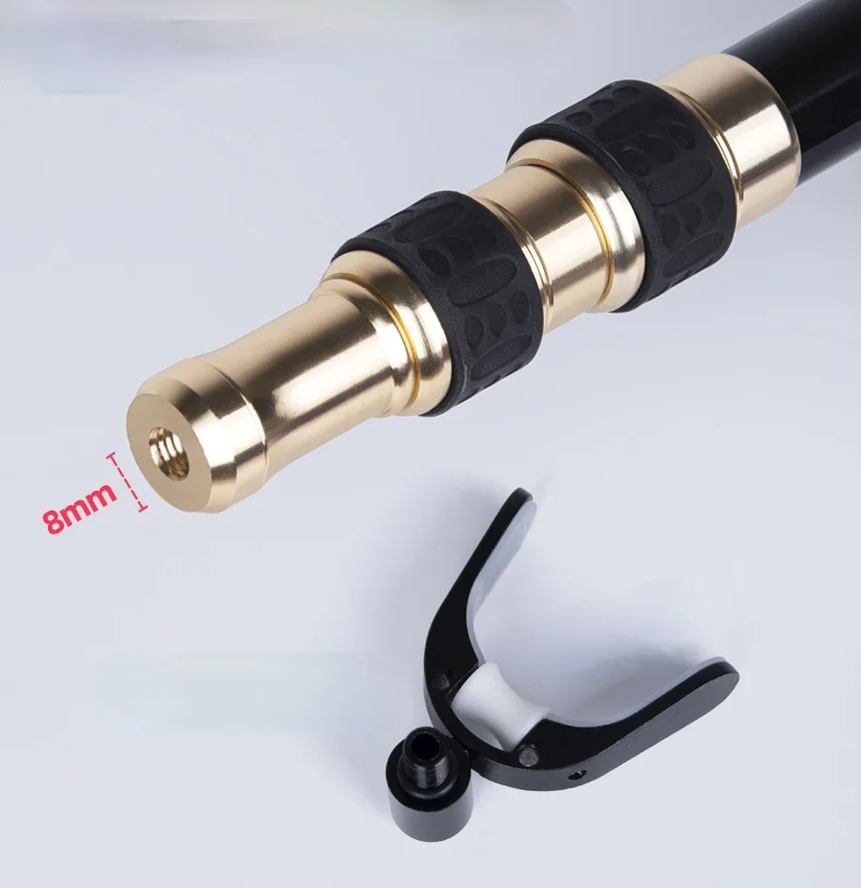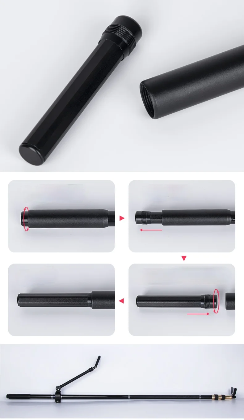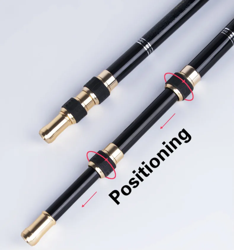 Pequeño y ligero, duradero, se puede estirar, se puede encoger. Puede ajustar libremente la longitud de la caña de pescar según sus necesidades. Cada sección está provista de una manija de bloqueo rápido.para transportar y usar, para viajar.