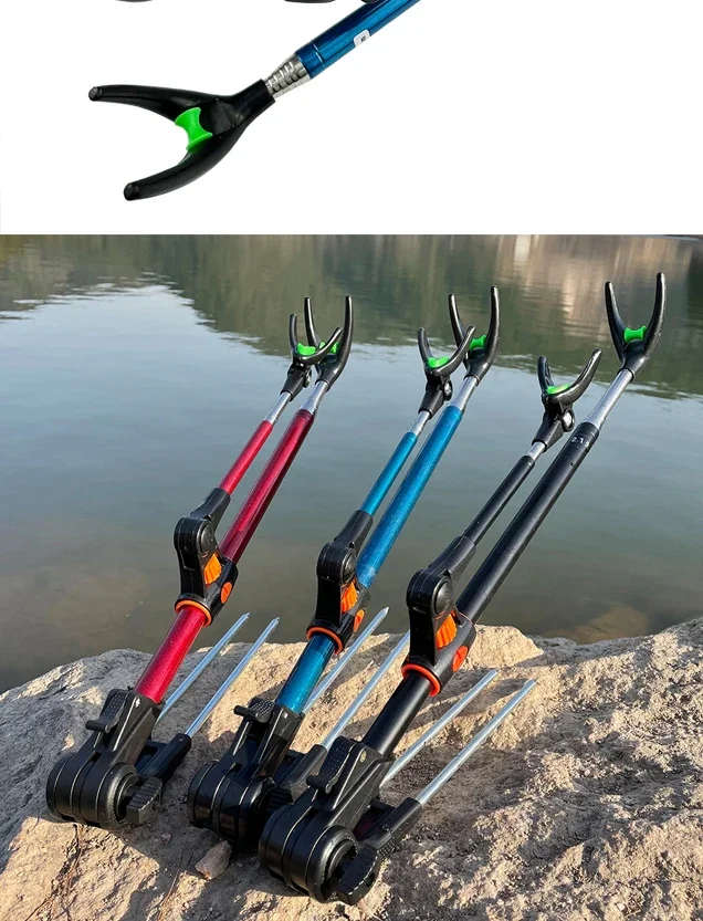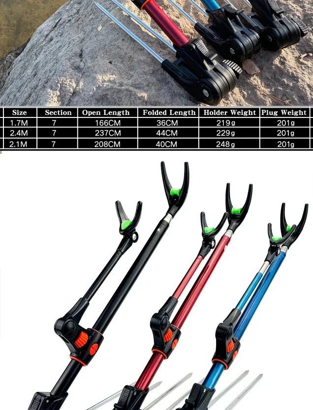 Soporte para caña de pescar en el suelo multiángulo, Material de acero inoxidable, soporte telescópico de doble uso súper plegable, 1,7 M, 2,1 M, 2,4 MInformación básica