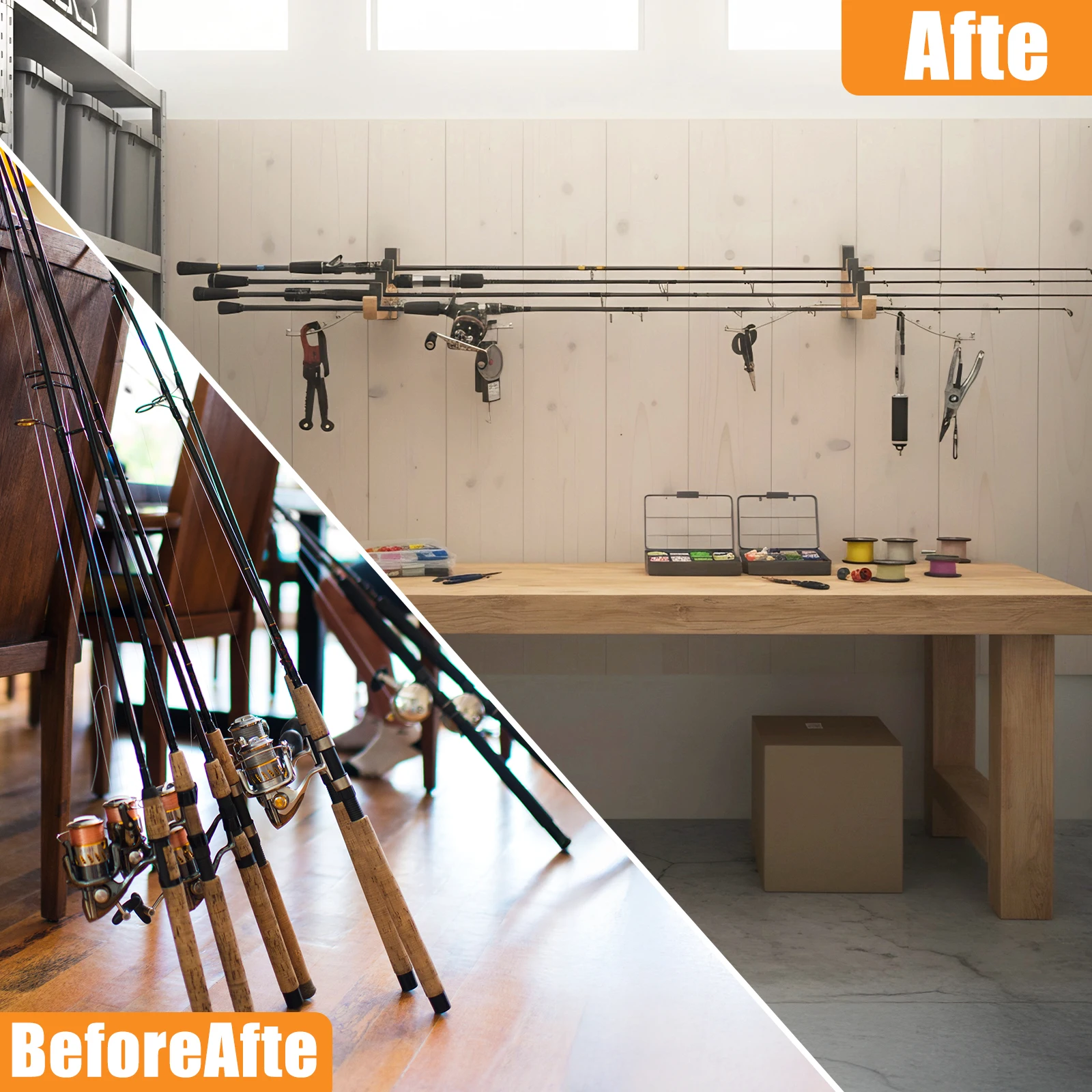Soporte para caña de pescar Goture, organizador de almacenamiento para caña de pescar para garaje, estante para caña de pescar montado en la pared con almohadilla protectora suave