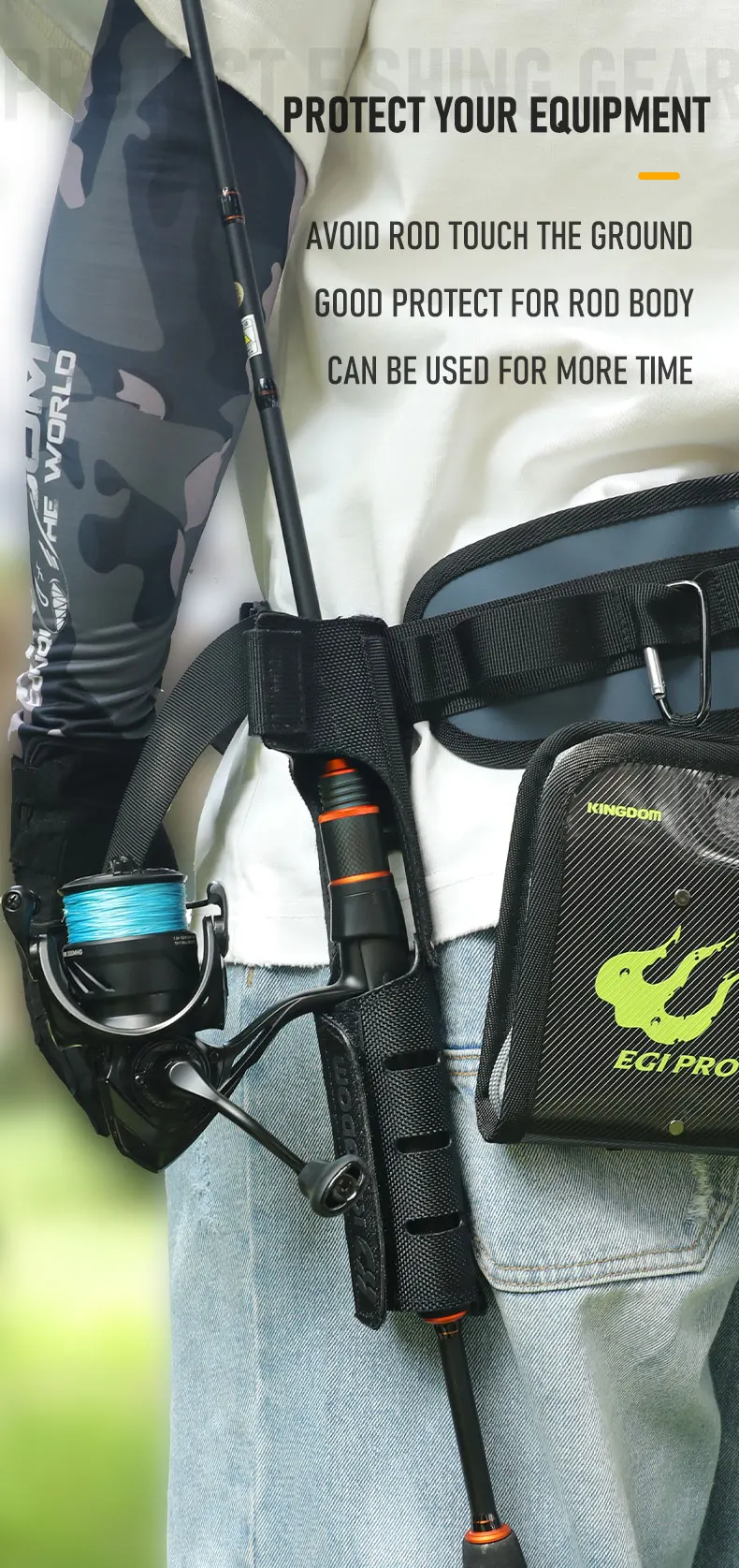 Soporte para caña de pescar Kingdom, diseño de Velcro gratis, nailon, portátil, ligero, insertador, soporte para caña, accesorios para aparejos de pesca