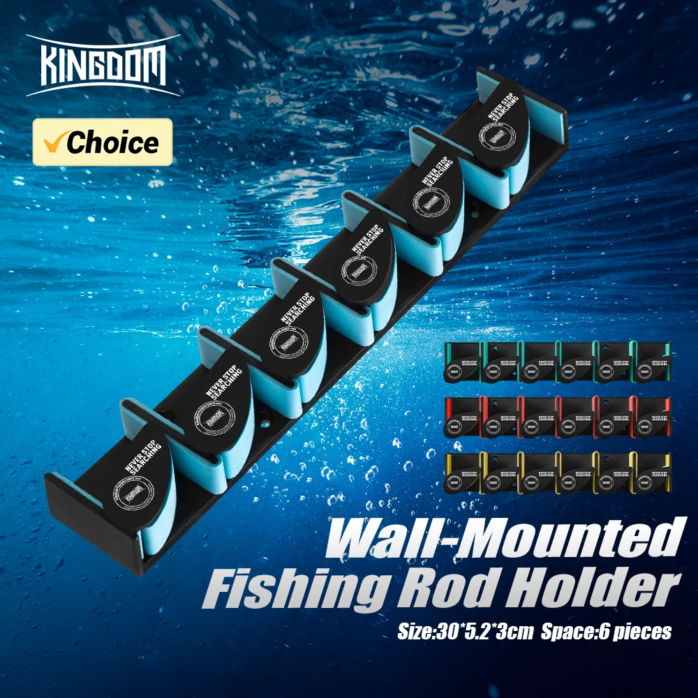 Soporte para caña de pescar Kingdom, 6 agujeros, Horizontal, montado en la pared, estante para caña de pescar, marco fijo de exhibición de almacenamiento Vertical