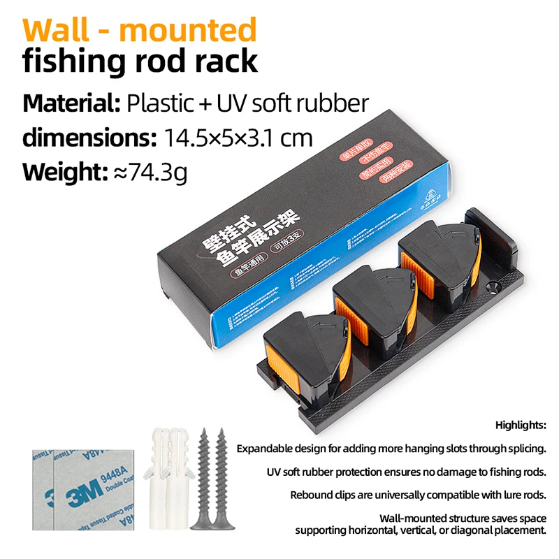 Estante para caña de pescar, soporte para caña de pescar montado en la pared, soporte para caña de pescar de goma suave de plástico + UV, tierra para centros comerciales domésticos