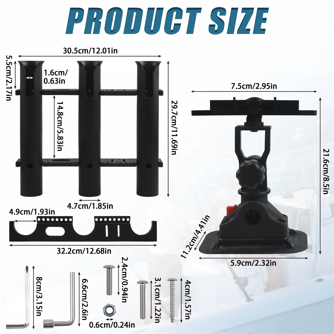 Soporte para caña de pescar, tubo de soporte para 3 Cañas, soportes para caña de pescar para barco, Kayak, camión de almacenamiento de garaje con tornillos de montaje lateral