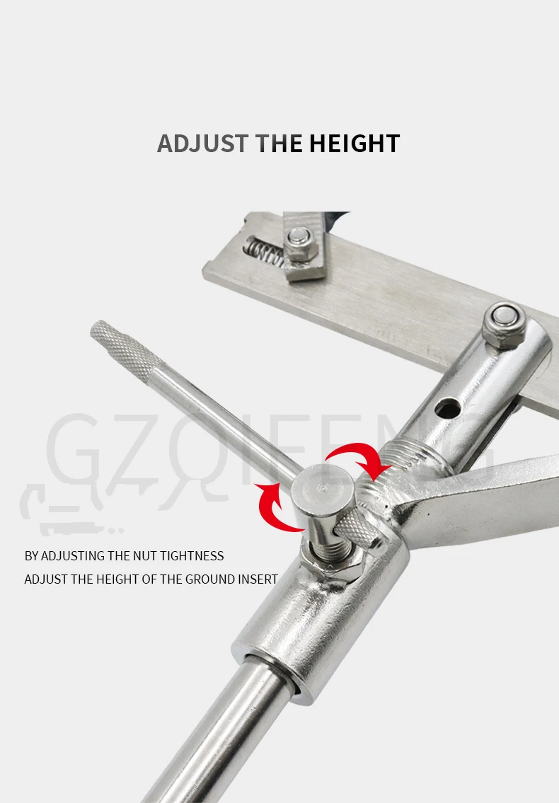 4.Inserto de tierra totalmente de acero inoxidable, la altura del inserto se puede ajustar ajustando la tensión de la tuerca.