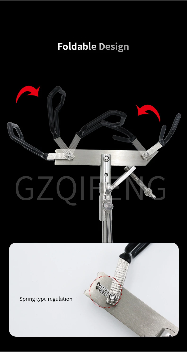 1.Diseño plegable, fácil de almacenar, la cabeza del estante se puede girar 90° ajustando la elasticidad.