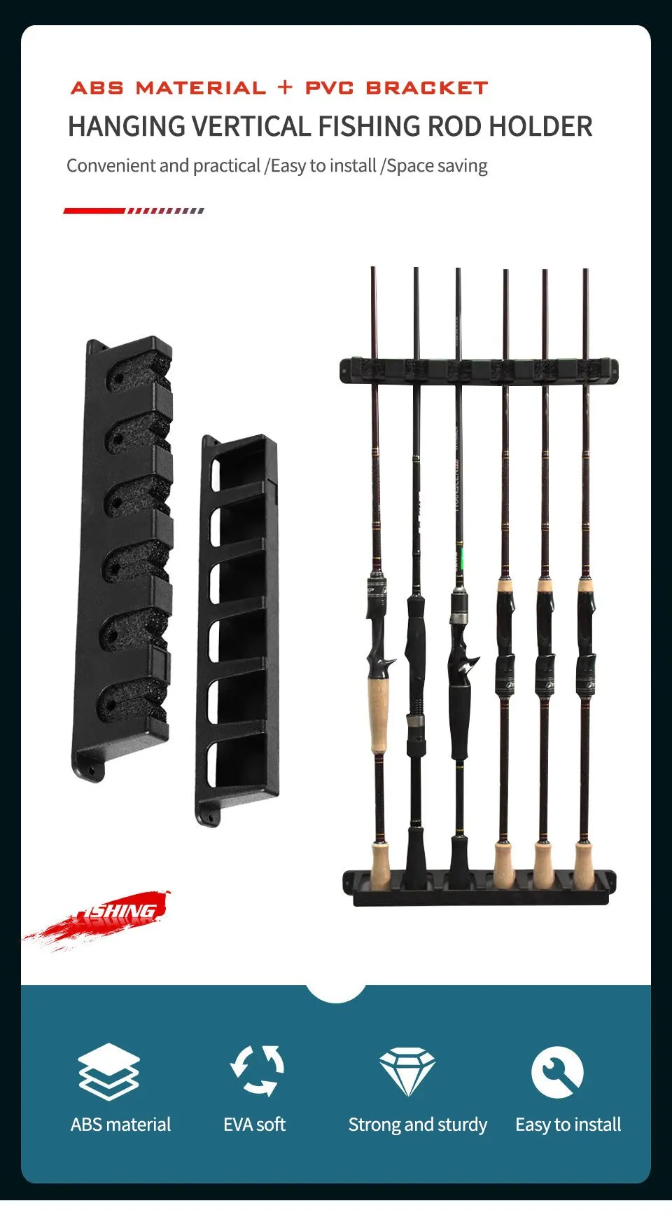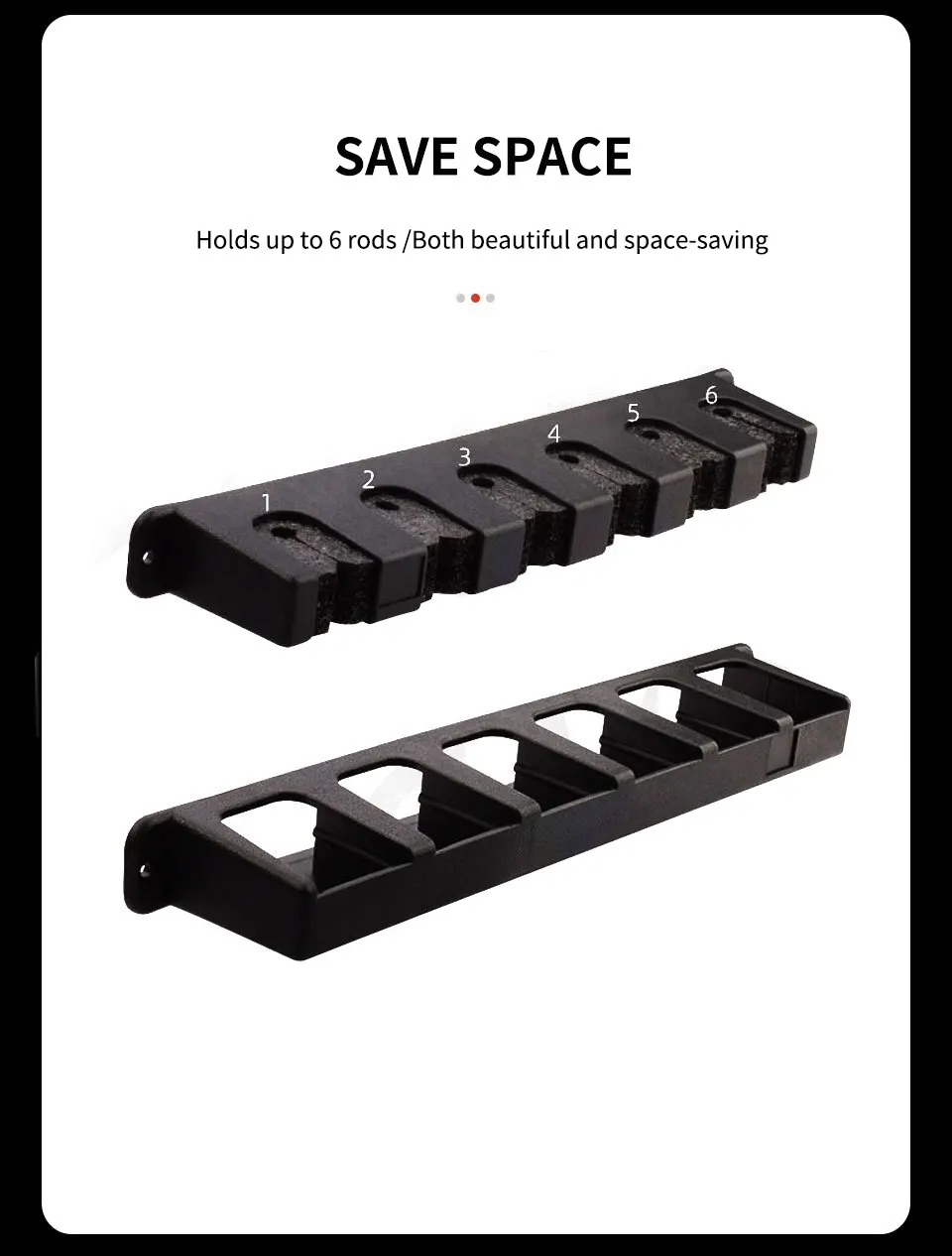 • Diseño eficiente en espacio :Almacene hasta 6 varillas verticalmente en una pared, ahorrando espacio valioso en su garaje o bote.