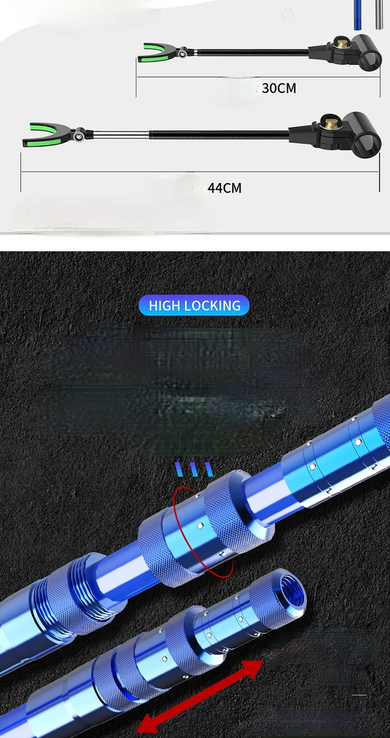 Pequeño y ligero, duradero, se puede estirar, se puede encogerPuede ajustar libremente la longitud de la caña de pescar según sus necesidades. Cada Sección cuenta con un mango de bloqueo rápido. Para llevar y usar, para viajar.