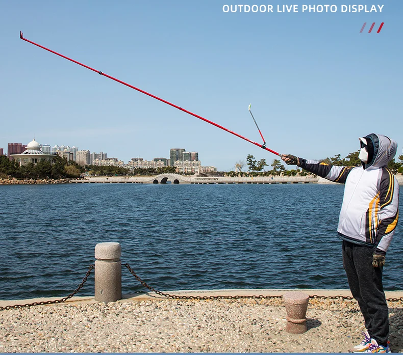 Pequeño y ligero, duradero, se puede estirar, se puede encoger Puede ajustar libremente la longitud de la caña de pescar según sus necesidades. Cada Sección cuenta con un mango de bloqueo rápido. Para llevar y usar, para viajar.