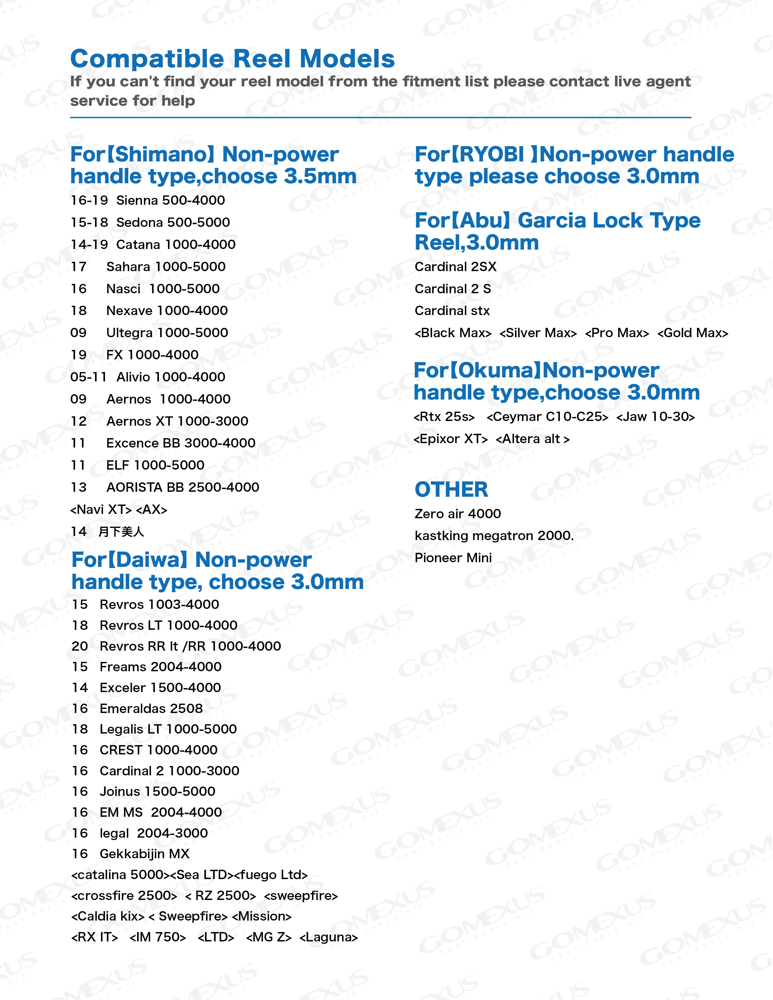 Finalmente encontré el tamaño correcto. El tipo cuadrado del grupo de productos Shimano tiene un tamaño de casi 3,5 mm de agujero de manija de carrete, por lo que solo hay precios en el rango de precios. ᅮᅮ El espesor de las hilas es solo de 3 mm. . . .El precio es algo así, pero la calidad es buena y buena. Es bonito~