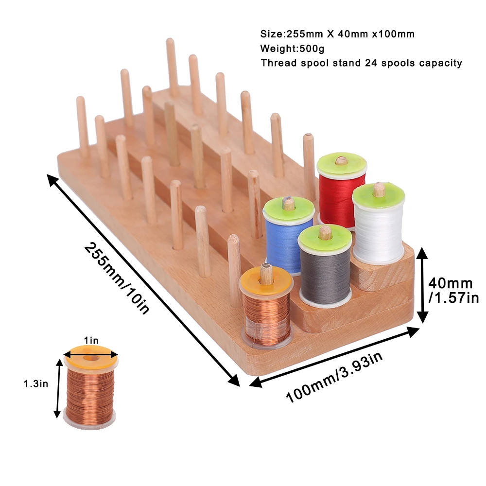 1. Soporte de carrete de rosca Capacidad de 24 carretes. El Cuerpo principal está hecho de madera de haya natural de primera calidad con acabado liso. Es muy resistente para sujetar carretes.