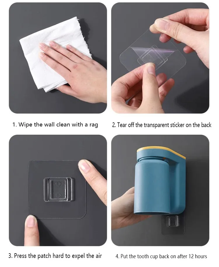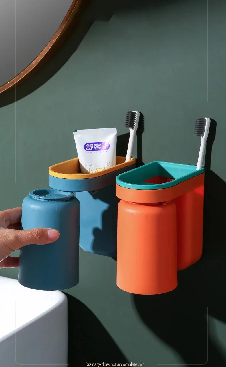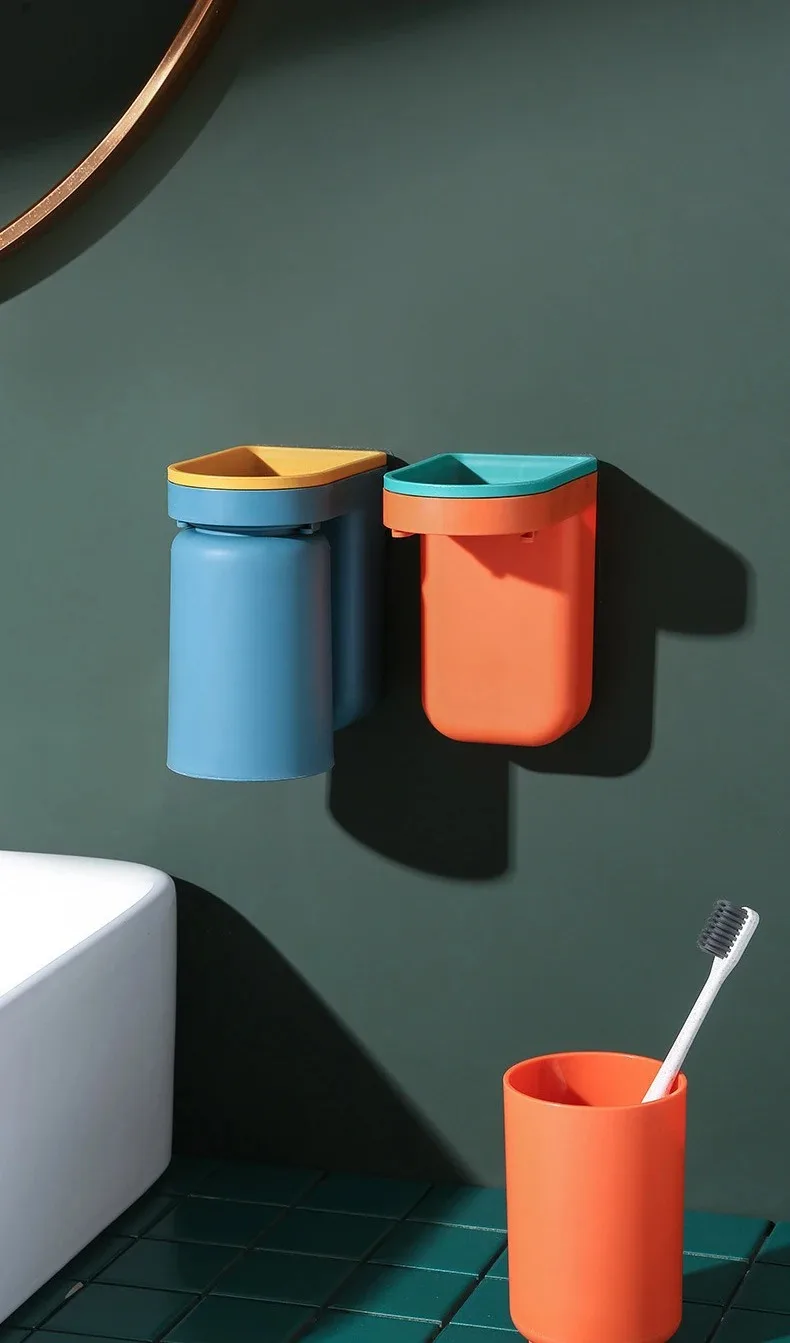Soporte de cepillo de dientes multifunción sin perforaciones para baño, taza de cepillo de dientes de 1-2 piezas, tazas montadas en la pared, productos de plástico para gárgaras, hogar