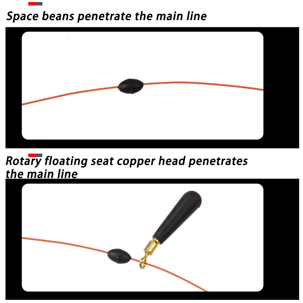 Soporte de flotador de pesca cabeza de cobre corcho de goma giratorio enchufe de asiento flotante Buya de rotación de deriva suministros de línea de pescado Accesorios