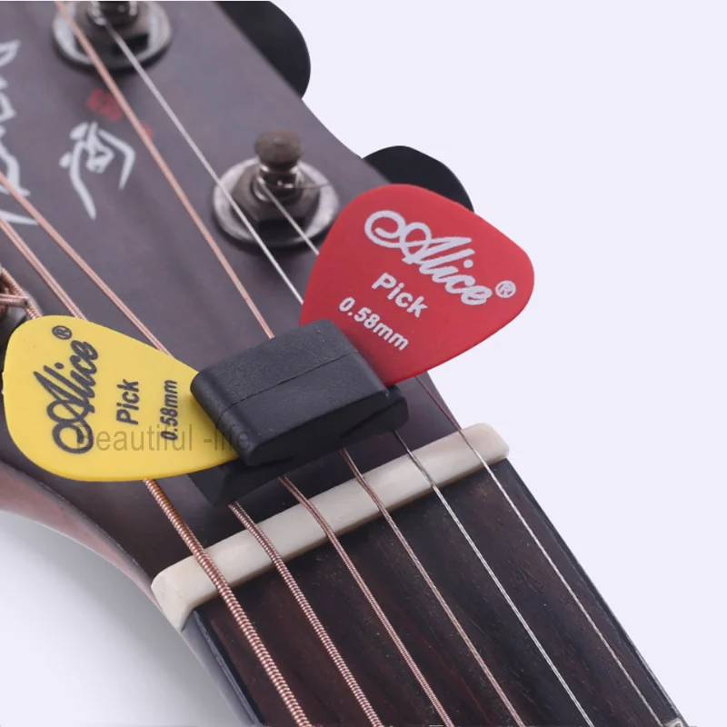 1/2/5, nuevo soporte de púa de goma negra para guitarra, ukelele, fijación en el clavijero, soportes firmes para guitarra, bajo, accesorios bonitos para guitarra