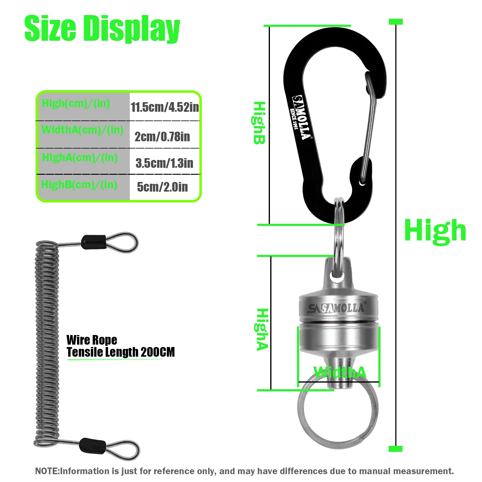 Soporte de liberación de red magnética con cordón en espiral, herramientas de pesca con mosca, mosquetón de imán fuerte, hebilla rápida, accesorios de cuerda anticaída