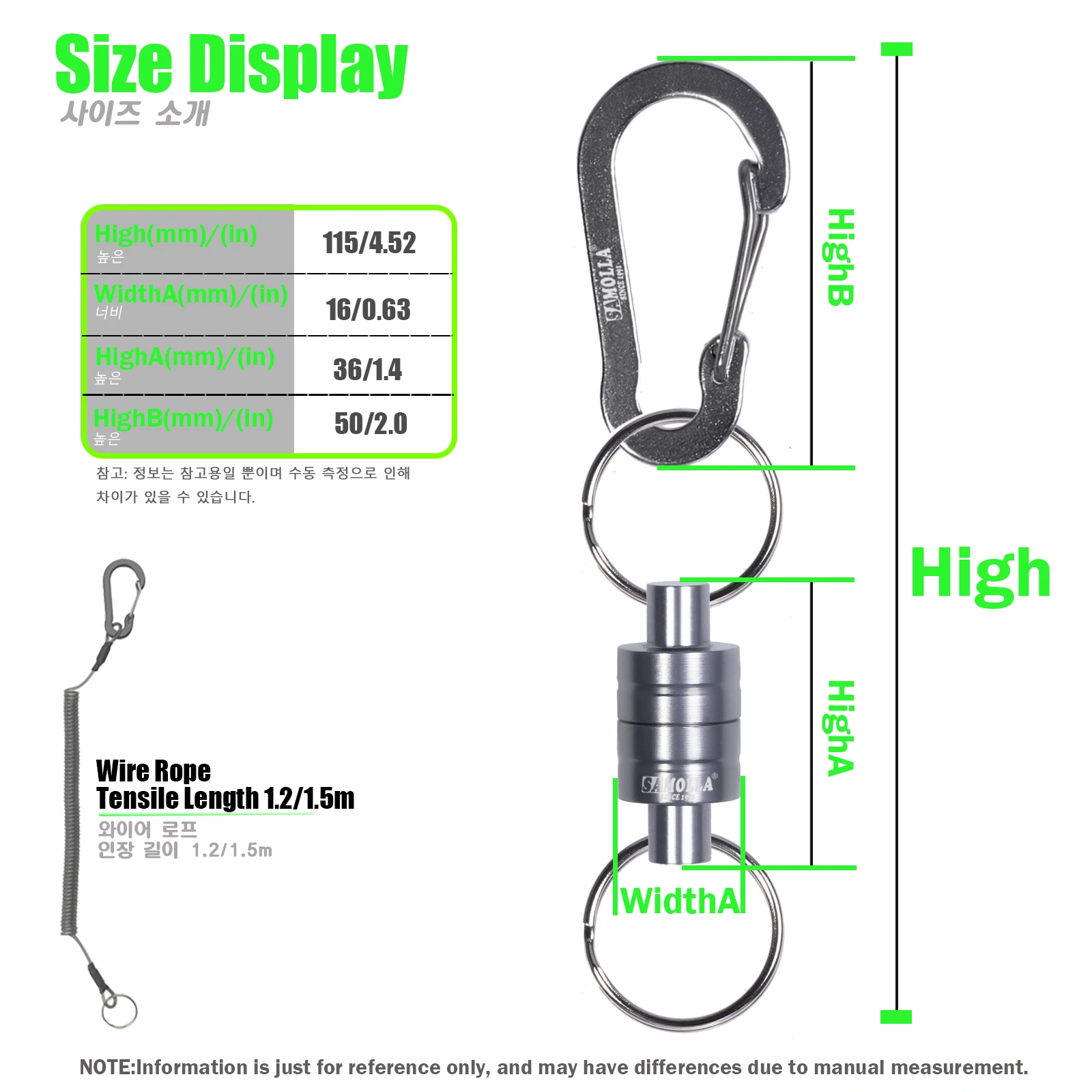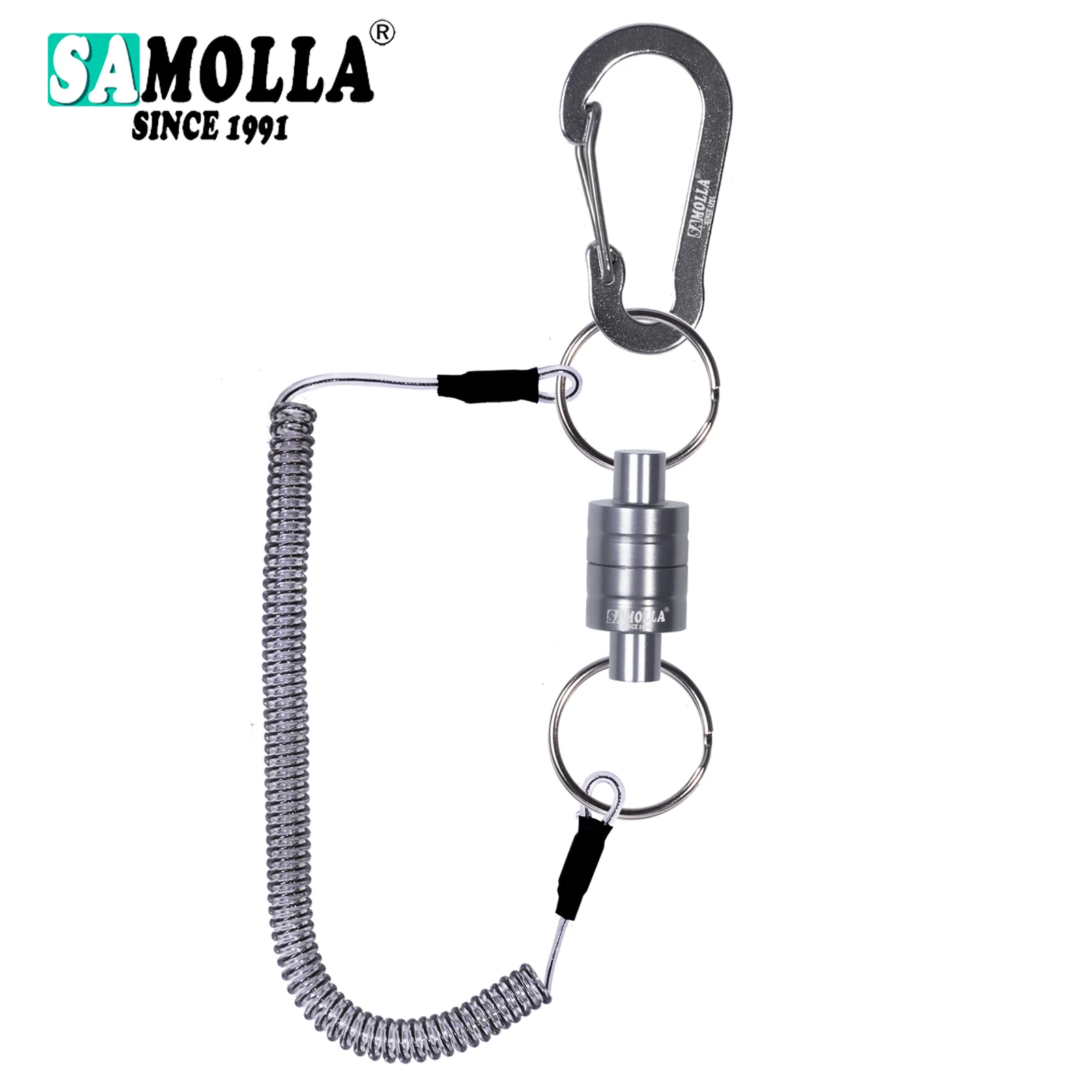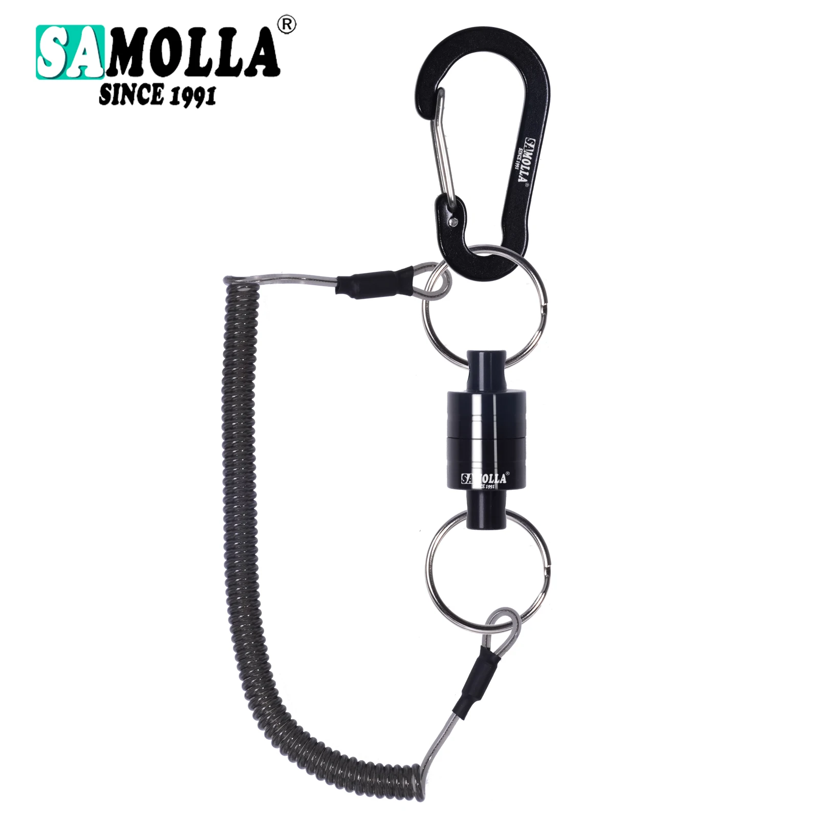 Magnetic Net Release Holder With Coiled Lanyard Fly Fishing Tools Strong Magnet Carabine Fast Buckle Anti-Drop Rope Tackle Accessories