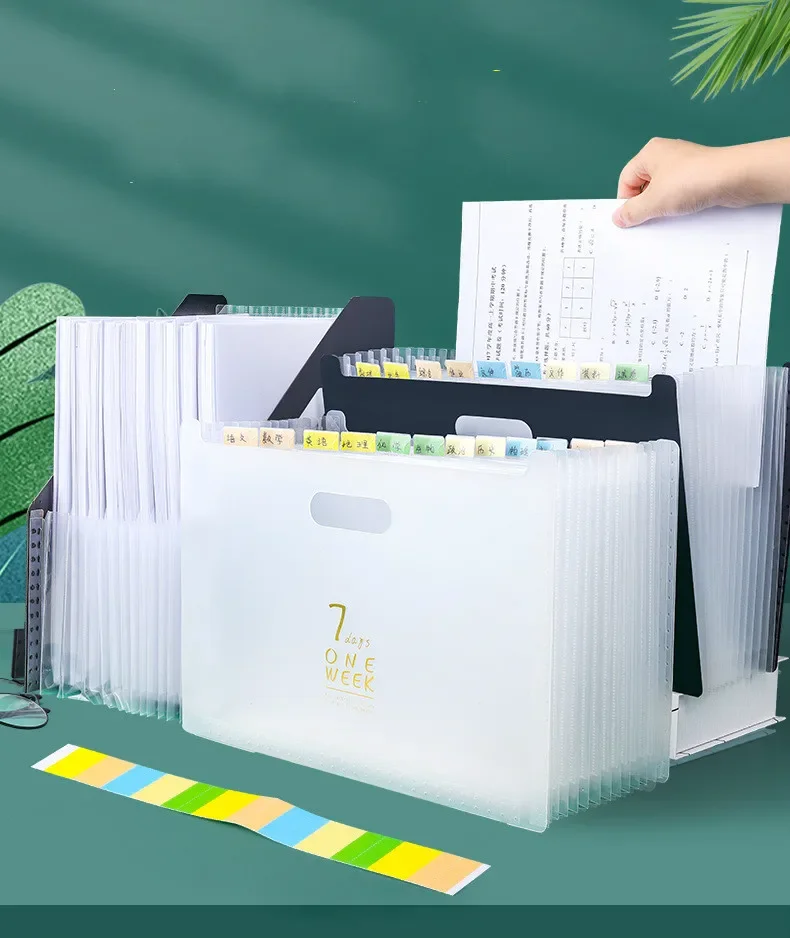 FÁCIL ACCESO: La parte inferior expandible permite capacidad adicional y también ofrece la capacidad de colocarse en su escritorio, 13 bolsillos junto con pequeñas etiquetas de colores que ayudan a clasificar sus archivos de manera efectiva y proteger cómodamente el contenido, y esta carpeta de acordeón mantiene todo en orden de Ahorre su valioso tiempo para elegir lo importante en una pila de archivos desordenados.