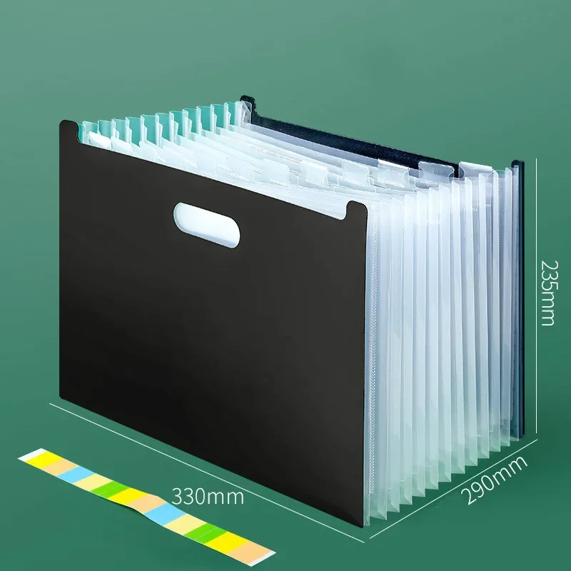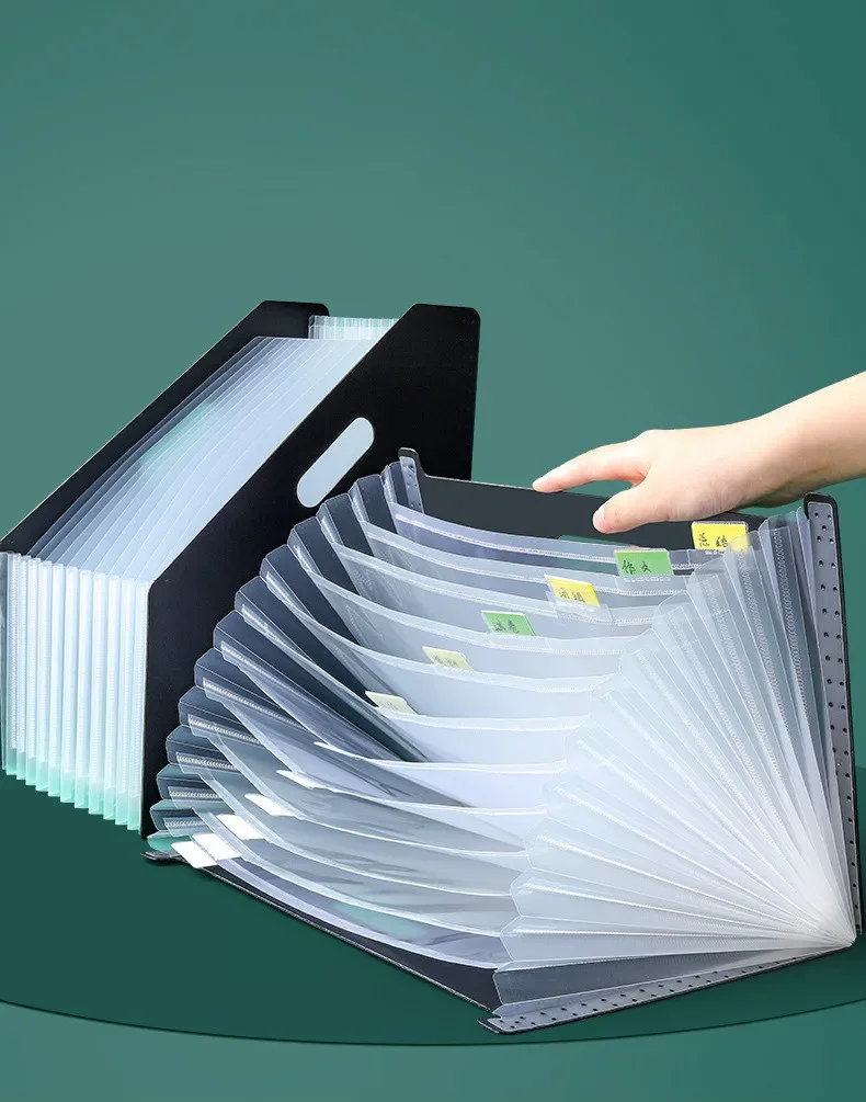 Con 13 compartimentos con pestañas separadas en cada carpeta, que le dejan mucho espacio para almacenar todos los archivos en un solo lugar.