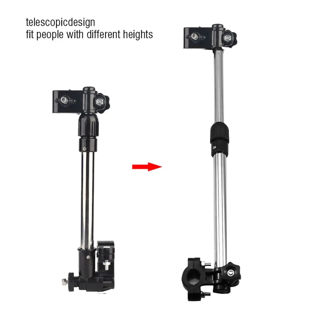 Varilla telescópica ajustable: la longitud de la varilla se ajusta de aproximadamente 31 a 46 cm (12,2 a 18 pulgadas), lo que brinda suficiente alcance para colocar el paraguas más alto o más bajo para que coincida con ciclistas de diferentes tamaños, alturas sentadas y posturas de conducción.