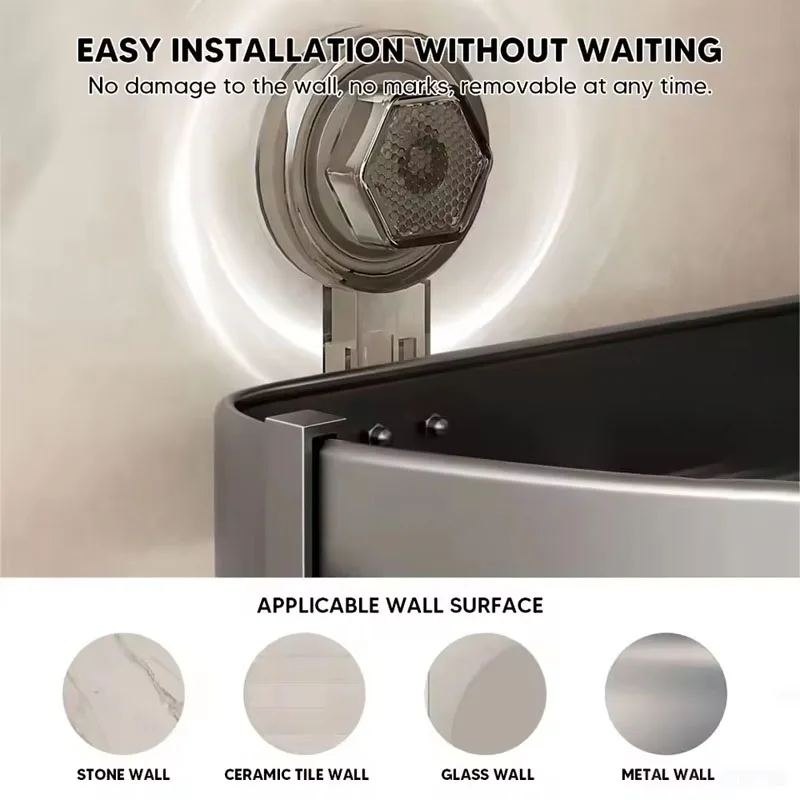La parte inferior del estante con ventosa está ahuecada, lo que ayuda a que la humedad se drene y evita que se acumule agua y moho, especialmente indicada para colocar artículos de tocador.