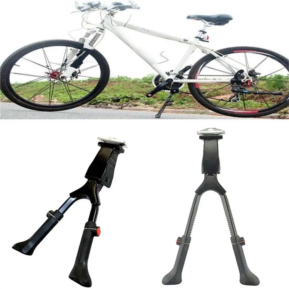 Type:Bicycle Kickstand Style:Adjustable Color: Black Material: Aluminum Alloy Item Size: 32 * 27cm / 12.5 * 10.6in Package included:1 * Double Kickstand