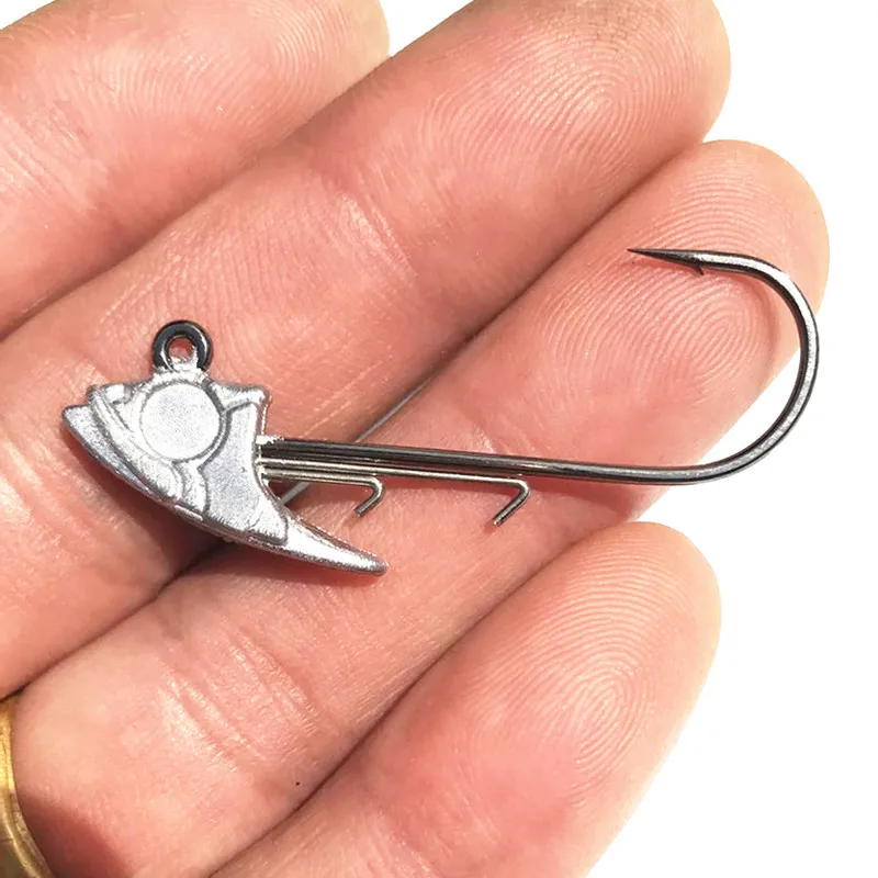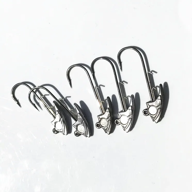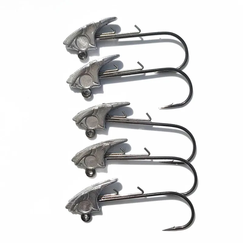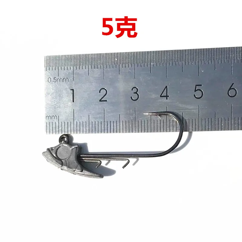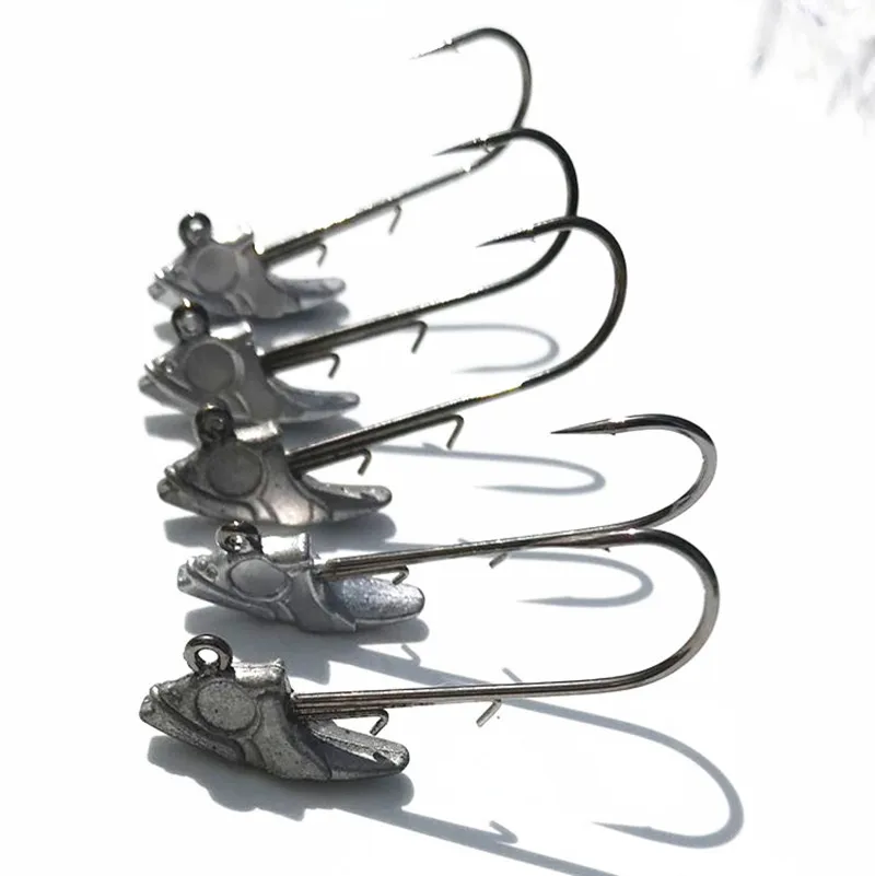 Soporte para Señuelos de Pesca, anzuelo con cabeza de anzuelo, señuelos de Metal, anzuelo de plomo de 4g y 6g con parte inferior de raíz de púas, lote de 5 piezas en oferta