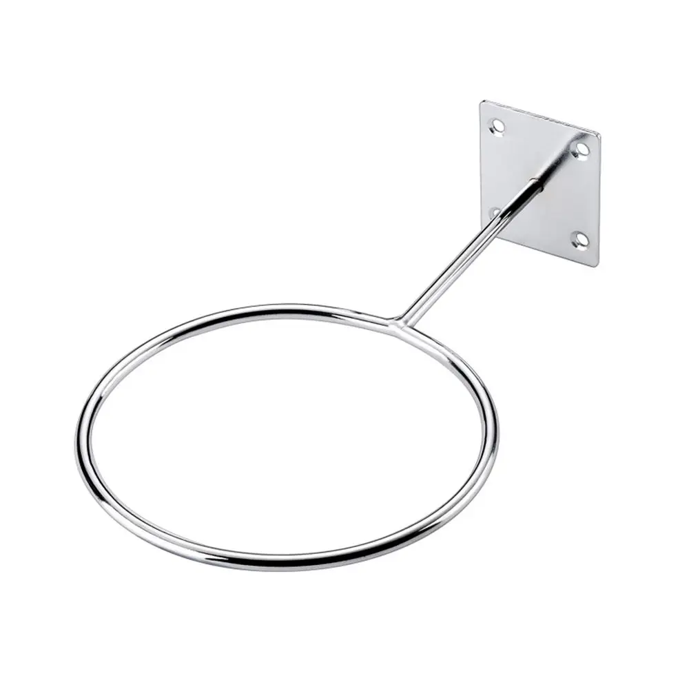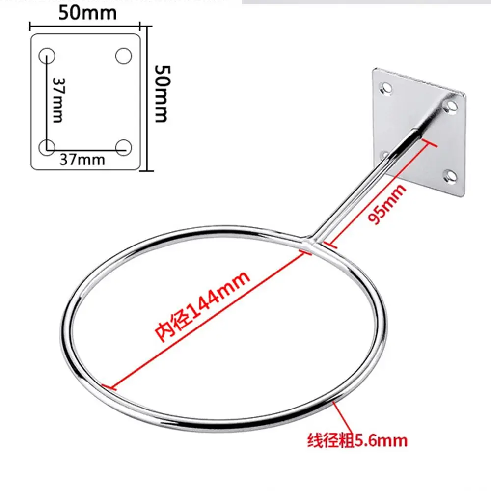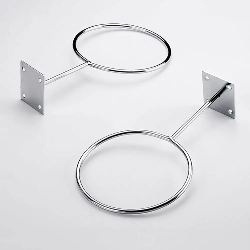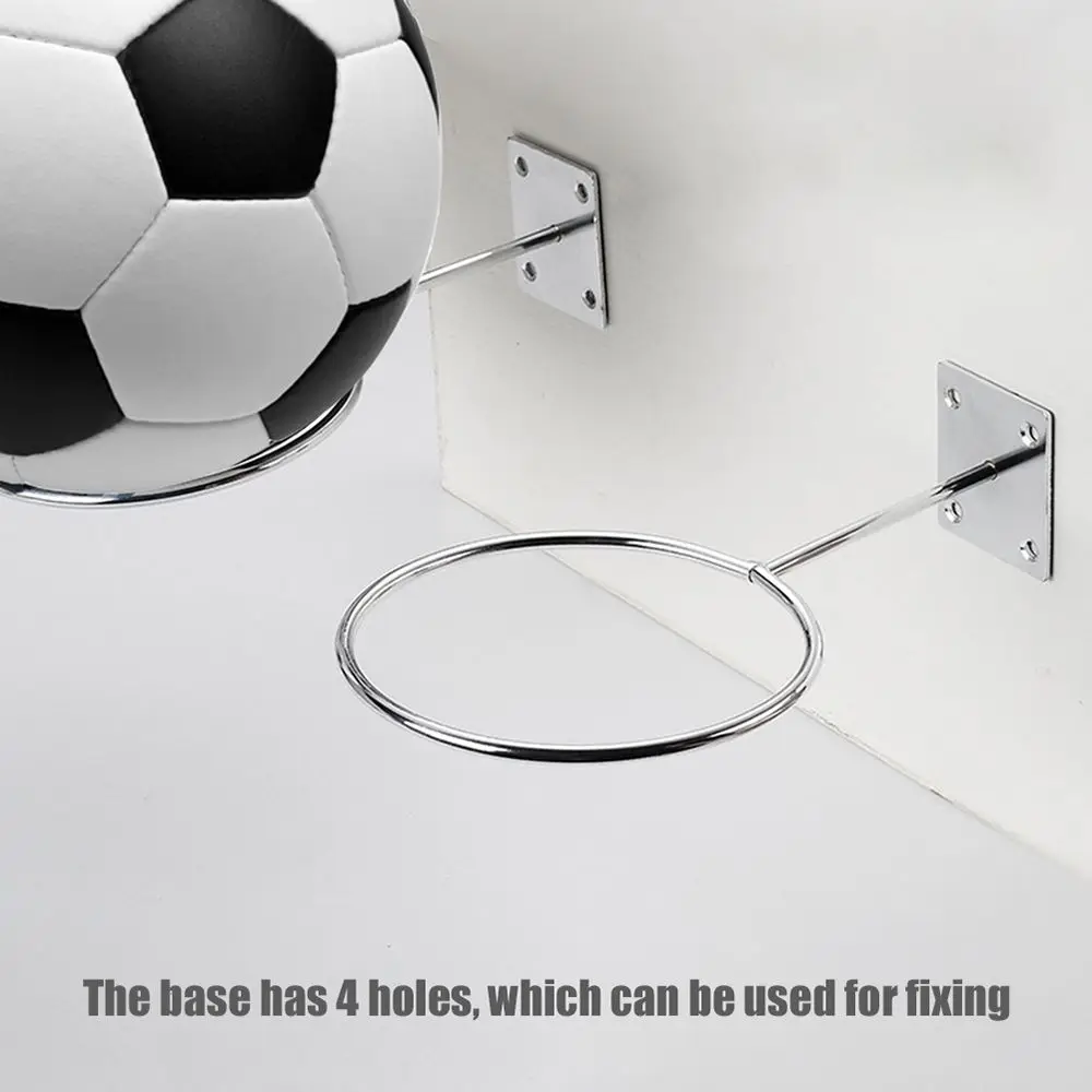 Name: Ball Holder Material: Iron Color: Silver Process:plating (not easy to rust) iron ring diameter: 14cm/5.51in base side length: 5.5cm/2.17in Iron ring thickness: 6mm/0.24in Package includes:1pc basketball holder (no screws,no balls) Features: The base has 4 holes, which can be used for fixing. The iron frame has a thickness of 6mm, which is more durable. This product can be used at home or in the store, gym, etc. This shelf can hold basketball. football. Balls such as volleyball, and will not appear to be crowded, saving space. The ball holder is treated with anti-rust plating. The surface is smooth and bright, and the quality is excellent.