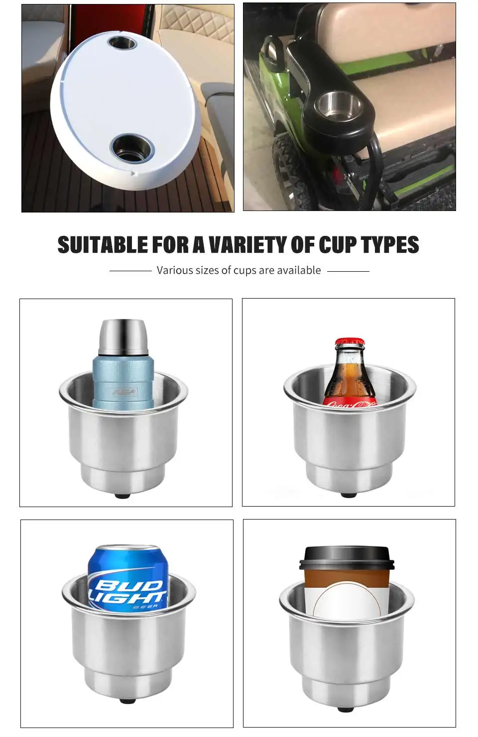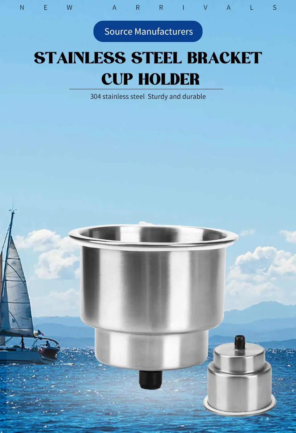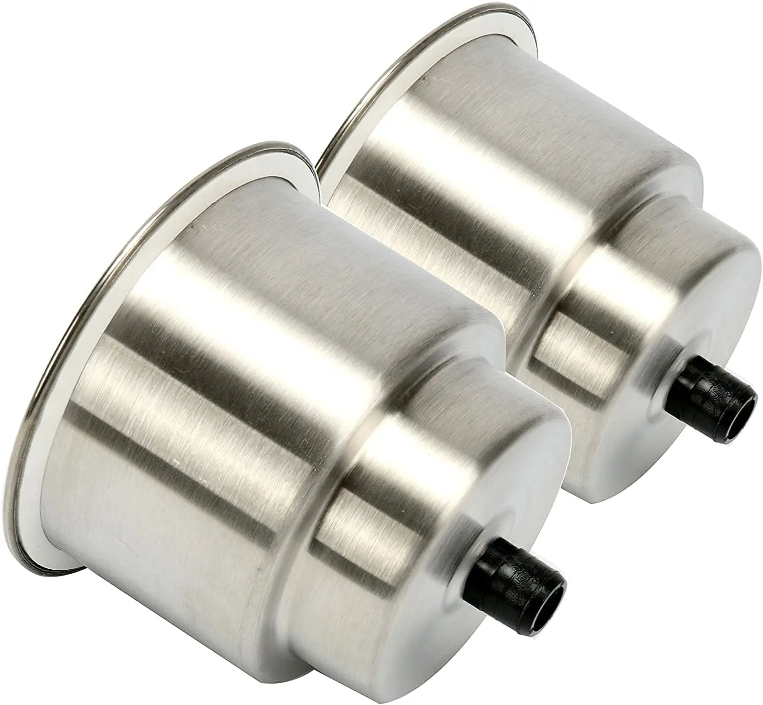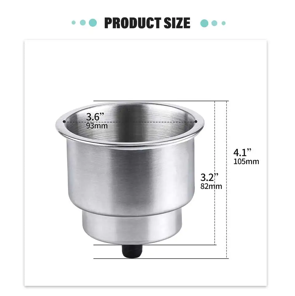 Material: Marine Grade Stainless SteelHeight overall including drain fitting : 3-1/4" (82mm)Diameter overall lip outside : 4-1/4" (108mm)Diameter inside (large) : 3-5/8" (92mm)Diameter inside (small) : 2-13/16" (72m)