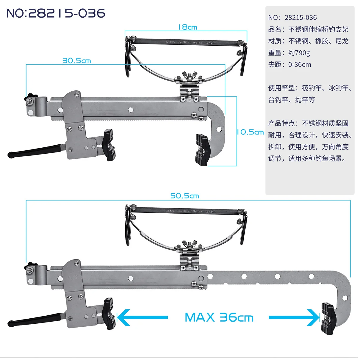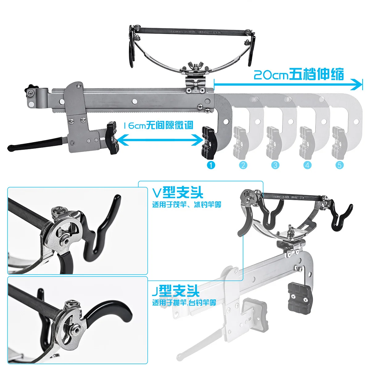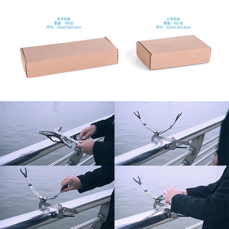 2:These fishing bracket shrinkage length of the buckle can be adjusted , not only face various thicknesses of ship hulls / bridges but also easily cope with strong winds weather.