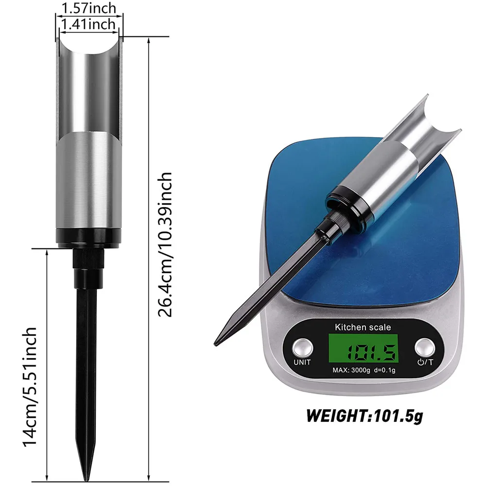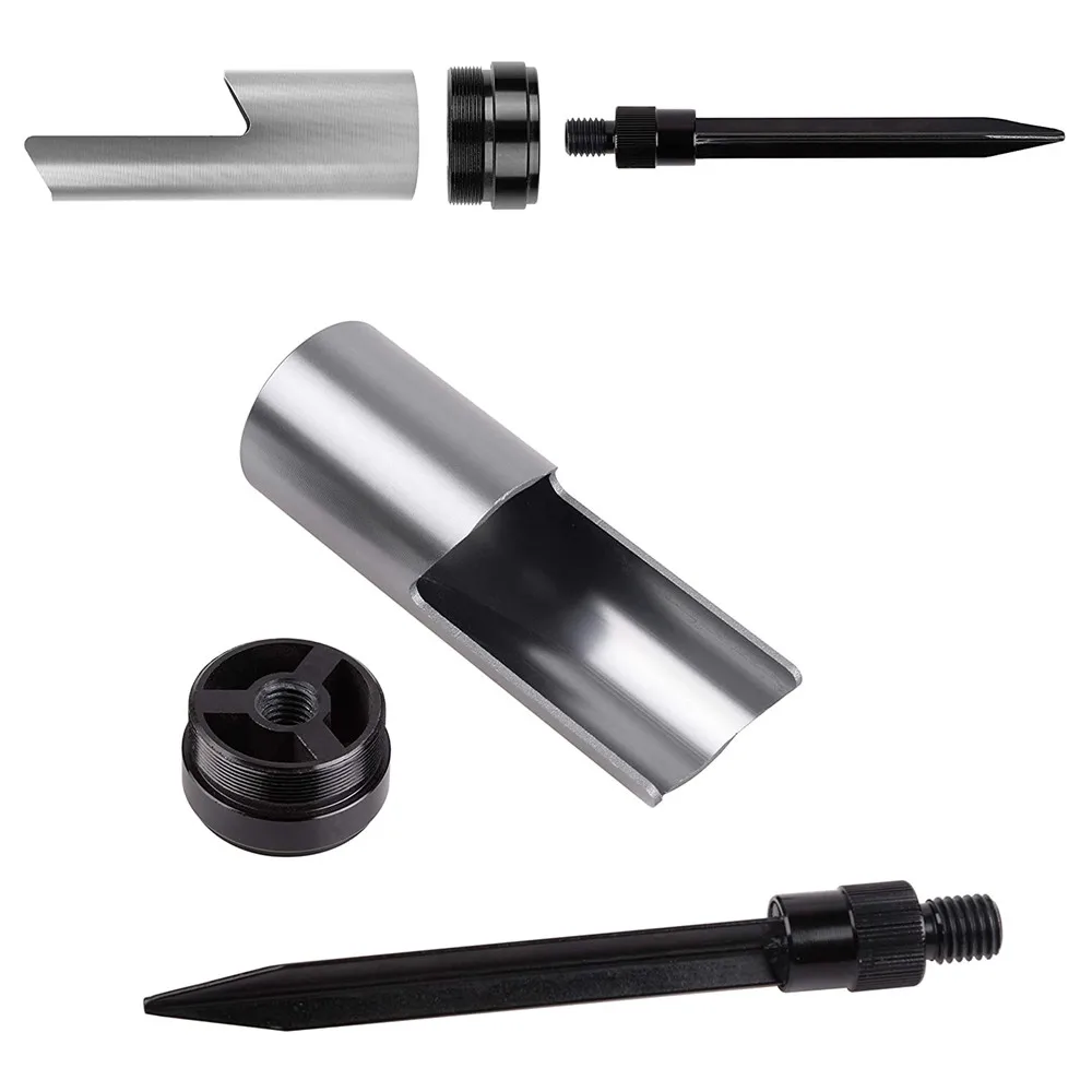 3. El soporte de la varilla se compone de tres piezas separadas que se atornillan en una unidad resistente: el soporte de poste tubular naranja, la punta y un conector roscado intermedio de metal circular