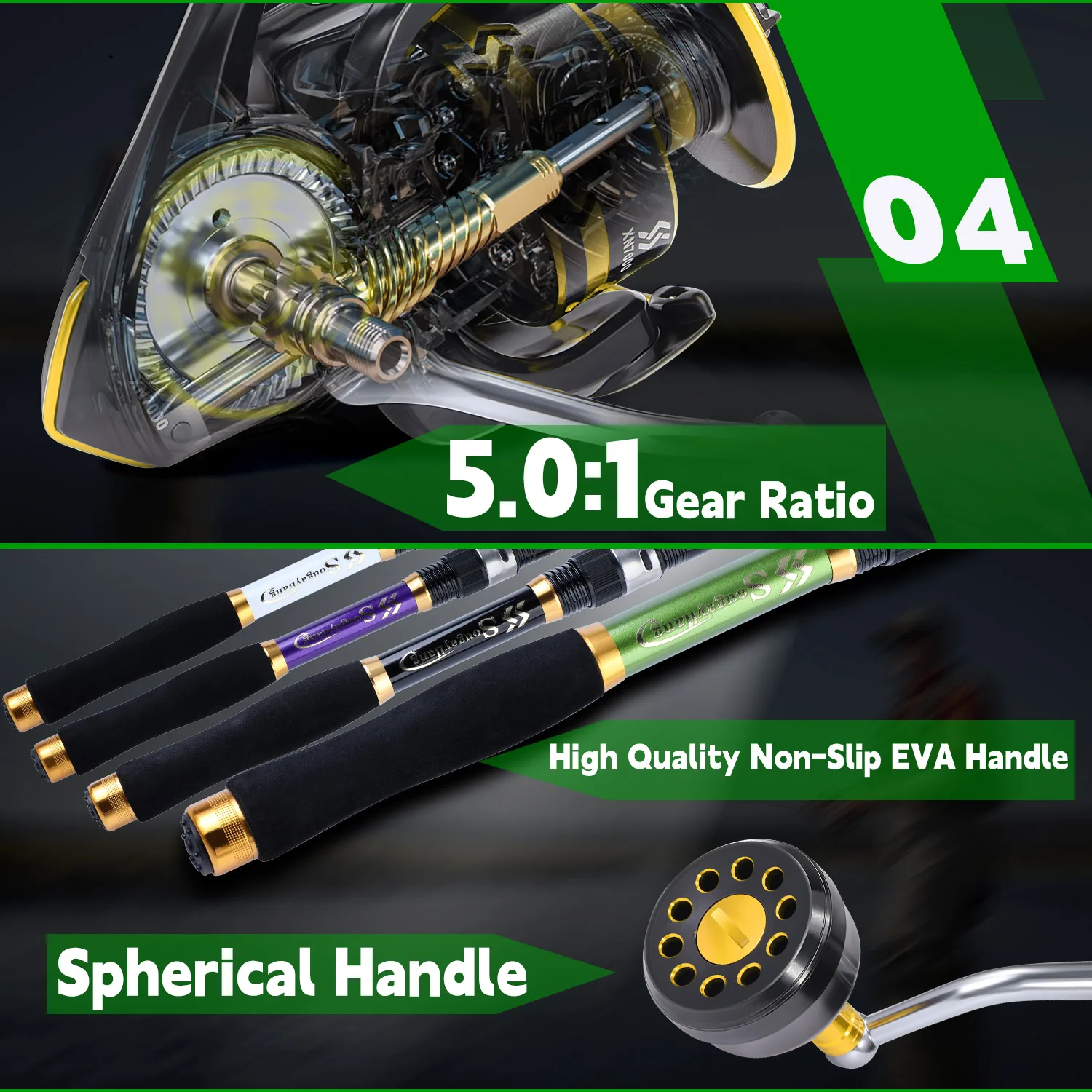 5. Diseño portátil de longitud cerrada para transportarlo cómodamente. Peso de pesca súper grande