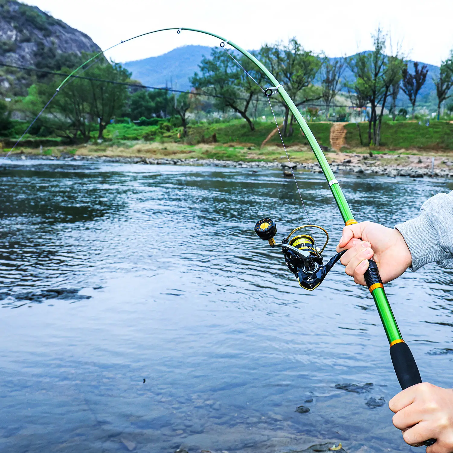 3. Esta caña de pescar está hecha de fibra de carbono, resistente y duradera.