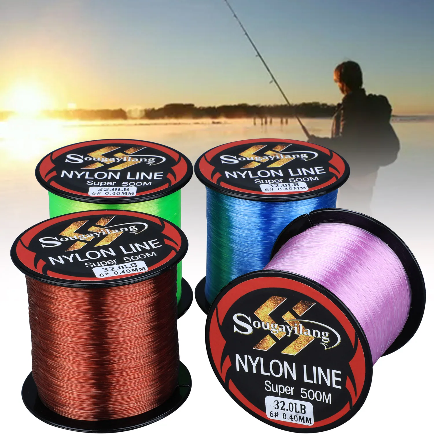 Sougayilang 1-8# Línea de pesca de nailon de 500M, sedal de pesca de nailon de 4 hebras, línea de pesca multifilamento de 11.0-36,3LB, Pesca suave