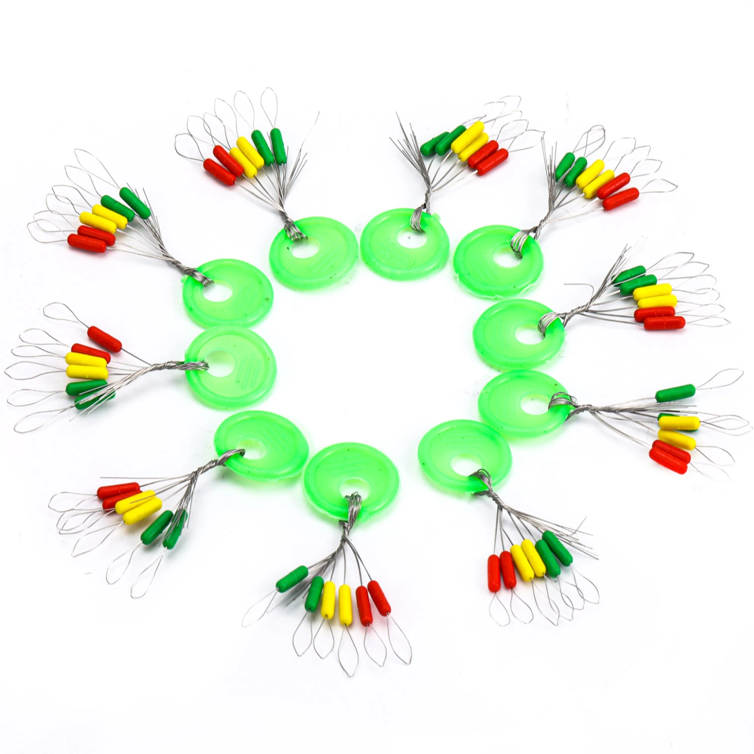 Disponibles en paquetes de 600, estos coloridos flotadores de frijoles espaciales ofrecen un amplio suministro para múltiples viajes de pesca.