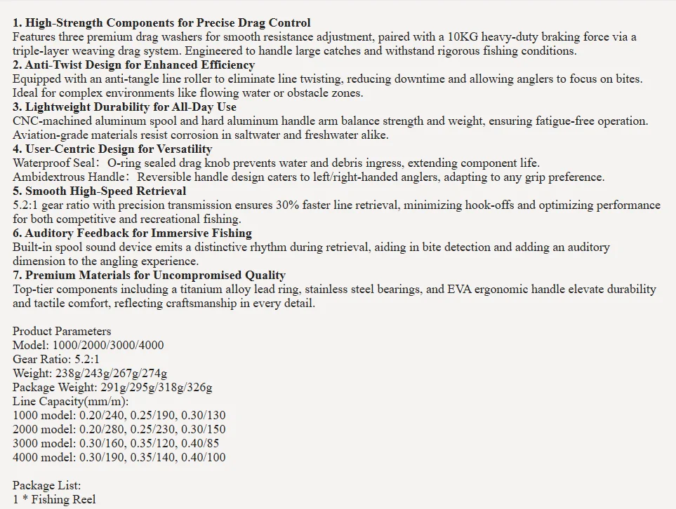 El paquete llegó como de costumbre, en perfectas condiciones. 😂 . El rollo en sí no es tan barato como un rollo de 6-7€, porque por 14€ se puede conseguir algo un poco mejor. Se han instalado 3+1 rodamientos de bolas (quizás solo sean 2+1...). La impresión en el rollo también es genial: +1 rodamiento de bolas. 😂 El color es definitivamente muy bonito (motivo de compra). El carrete gira unas 6 vueltas después de lanzar. No particularmente, pero en general tiene menos juego que los carretes más baratos disponibles aquí. En general, recomiendo ahorrar el dinero para 2-3 carretes baratos y comprar en su lugar un Shimano Exage usado por alrededor de €40. Allí tienes más calidad, gira más tiempo, menos juego, rendimiento de frenado mucho mejor, mayor valor de reventa.