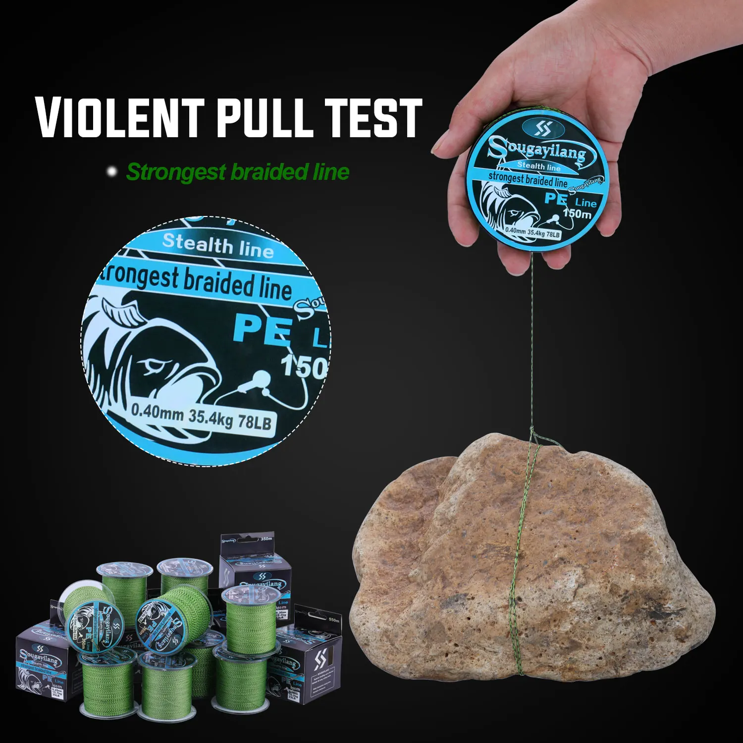 Sougayilang 150M 350 550M 4 hebras Pe línea de pesca trenzada mezcla de colores línea de punto 20-78LBS línea de pesca suave y duradera