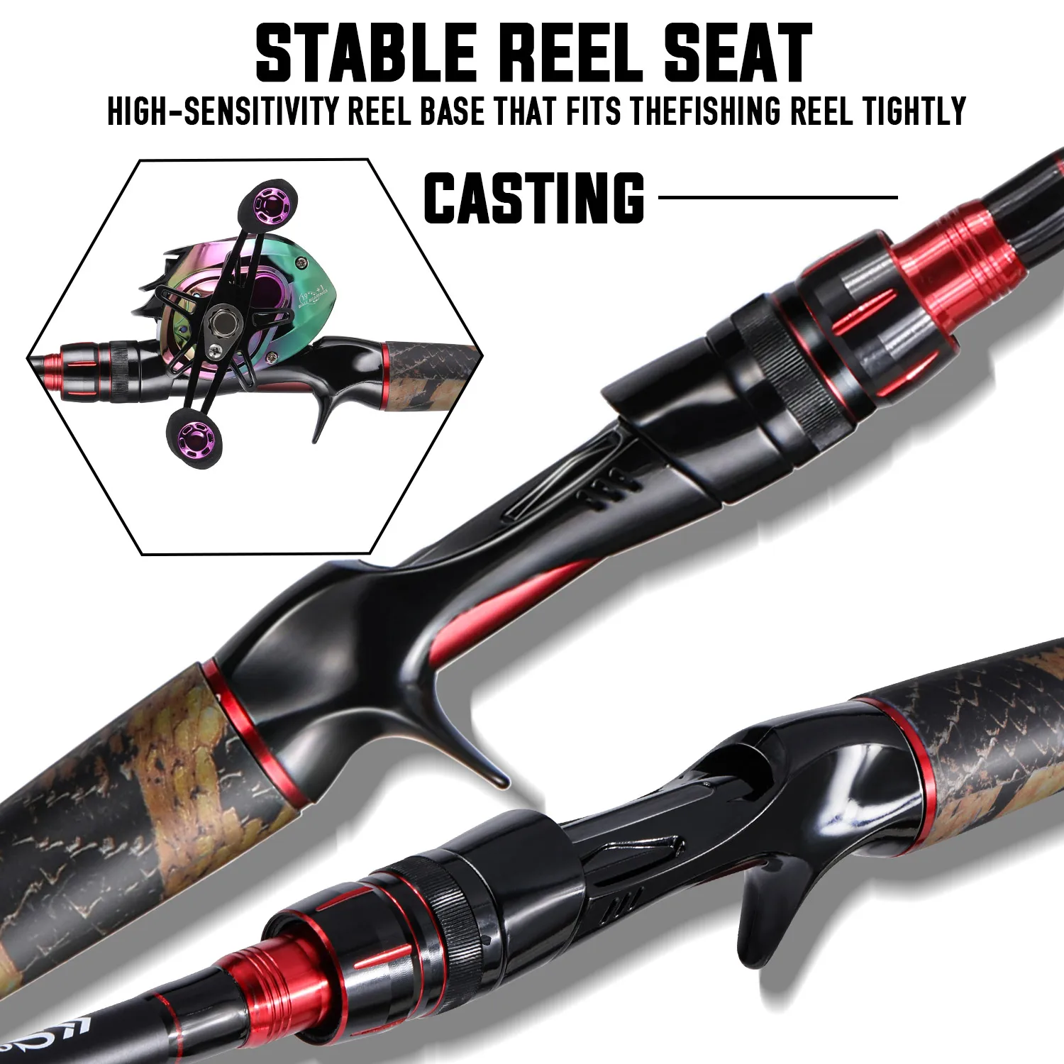 1. La caña de pescar giratoria está construida con fibra de carbono y de fundición de 30 toneladas de alta calidad, logrando el mejor equilibrio entre la sensibilidad de la caña,