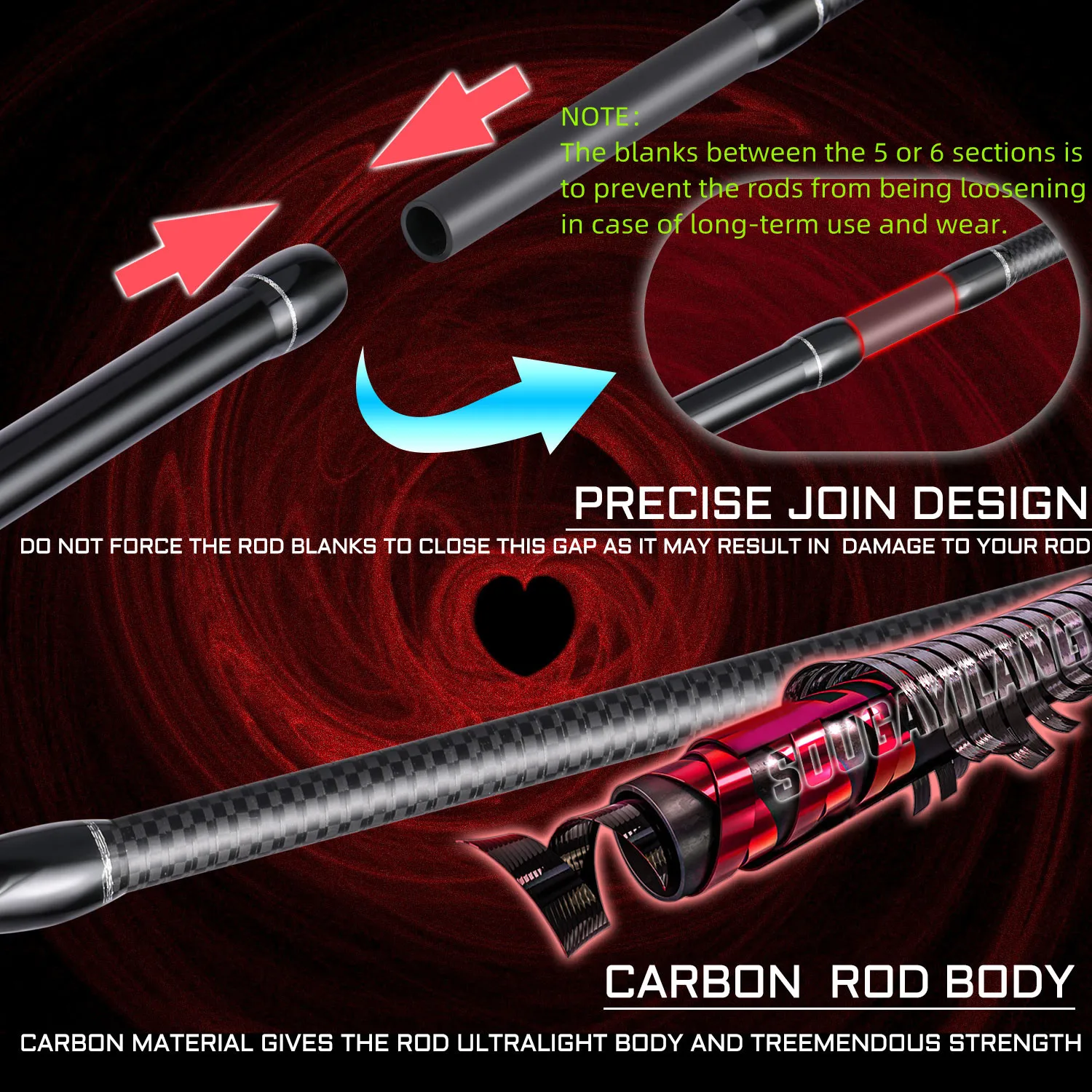 Sougayilang 1.8M 2.1M caña De pescar giratoria De fibra De carbono, caña Baitcasting para lubina, Lucio, trucha, Caña De Pescar