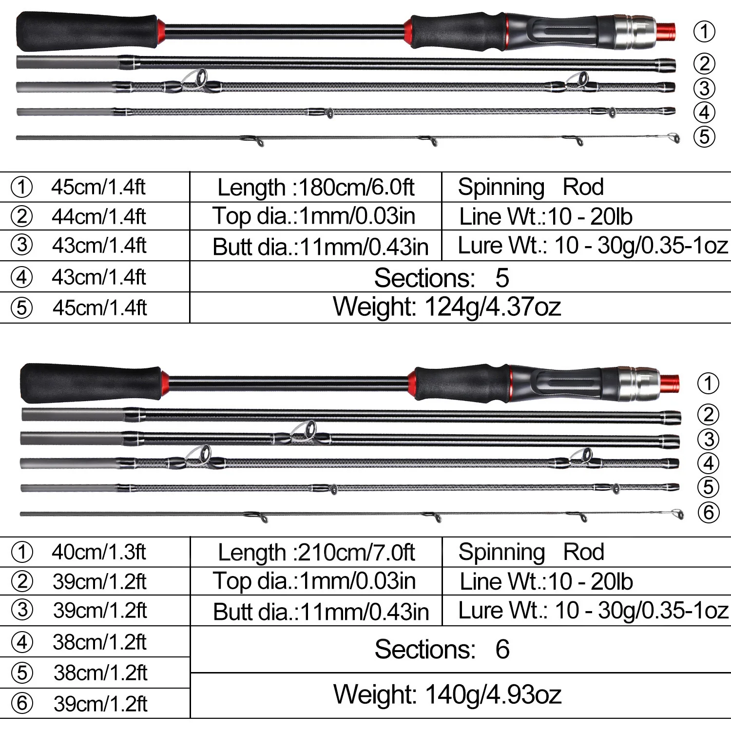 Sougayilang, caña de pescar con señuelo de 1,8 m y 2,1 m, caña de pescar giratoria/fundición de fibra de carbono, caña de pescar portátil de viaje, aparejos de pesca