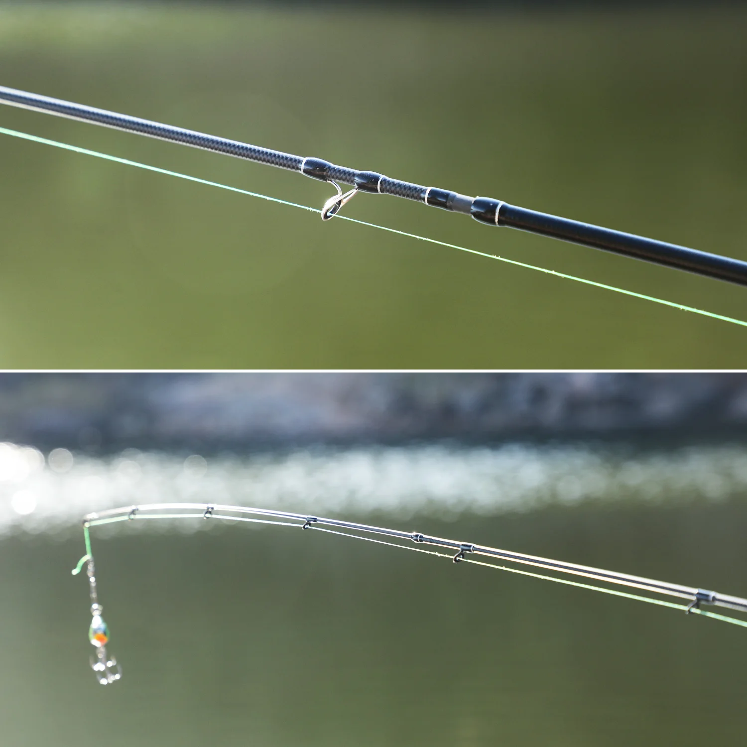 3. Esta caña de pescar está hecha de fibra de carbono, resistente y duradera.